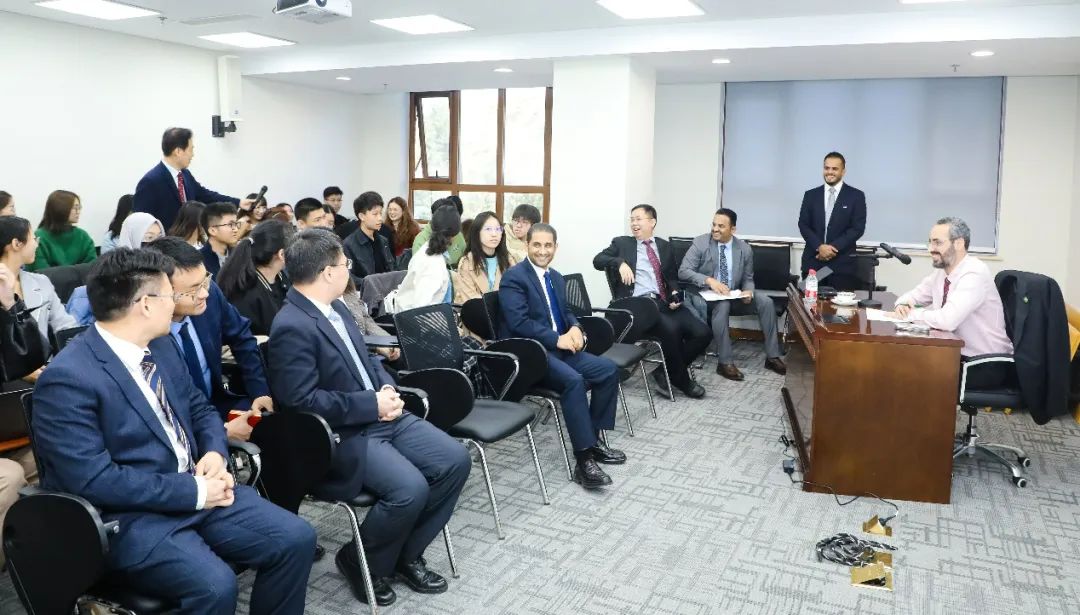 哈勒比大使认真细致地回应了阿语系师生的发言与提问。他表示,沙特和中国都有各自引以为豪的优秀传统文化,也都在建设现代化强国的道路上努力前进,当前中沙全面战略伙伴关系正在不断迈上新台阶。在沙特“2030愿景”与中国“一带一路”倡议对接的大背景下,两国文化合作也将持续深化拓展,沙特汉语学习者和中国阿拉伯语学习者未来既可以成为外交官、高校教师,也可以在私营部门贡献力量,希望北大阿语系的同学们成为两国友好合作交往的桥梁。萨哈拉尼参赞充分肯定了同学们的阿拉伯语水平,并介绍了申请沙特留学项目的途径与渠道,欢迎各位北大学子前往沙特学习交流。
