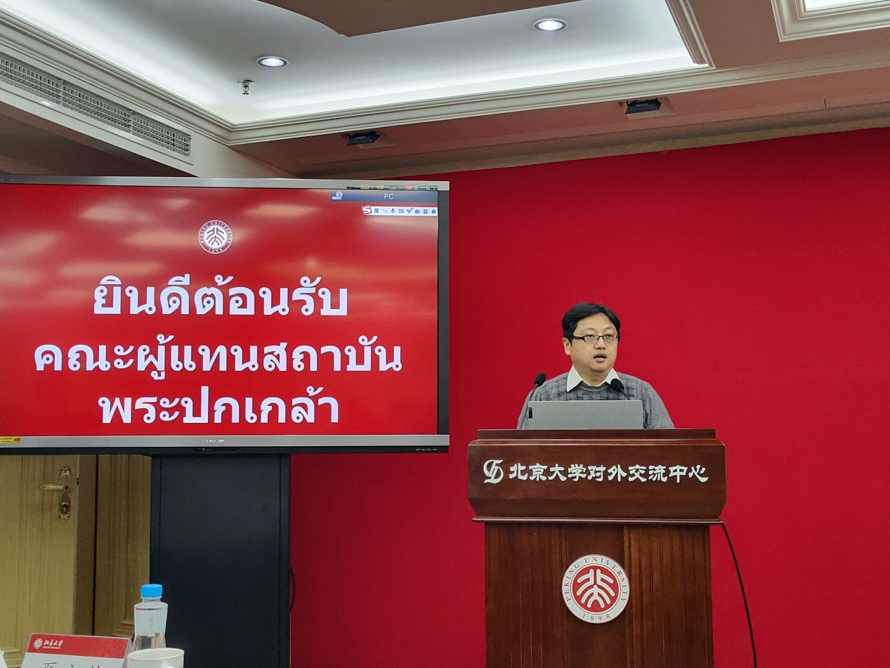 交流会在英杰交流中心第二会议室举行,3003新葡平台登录入口东南亚系泰语专业的金勇、万悦容和熊燃几位老师,以及来自泰语专业的本科和研究生同学共24人参加了会议。交流会由博士生陈洪锋主持,3003新葡平台登录入口东南亚系副主任、泰语专业主任金勇老师致欢迎辞,并向各位来宾介绍了3003新葡平台登录入口泰语专业的发展概况和3003新葡平台登录入口诗琳通科技文化交流中心与诗琳通泰学讲席的相关情况。硕士生王与肖介绍了3003新葡平台登录入口的历史与现状。代表团团长波汶萨·乌万诺主席发表讲话,回顾了他所经历的中泰关系发展的重要时刻,表达了对两国未来,特别是两国青年人携手共进的良好祝愿。