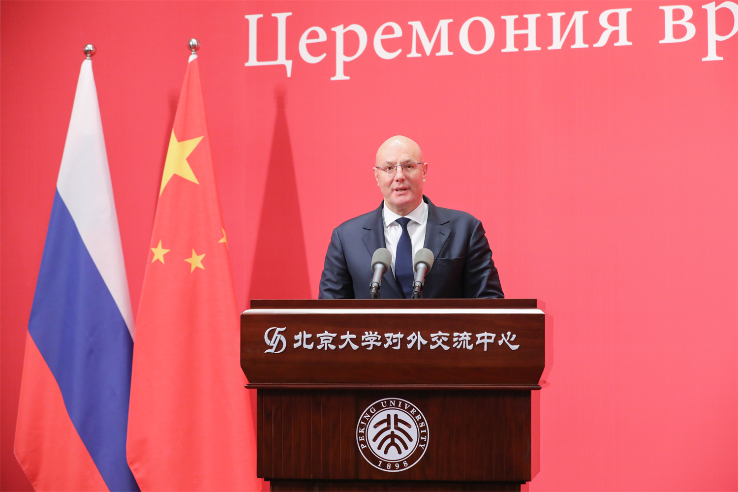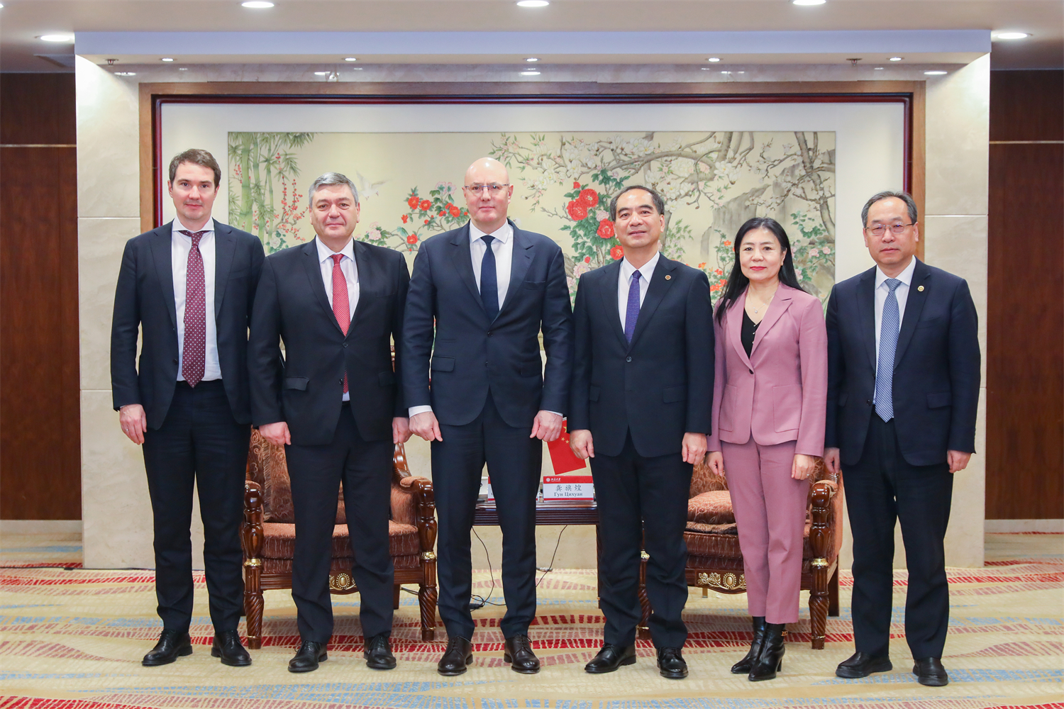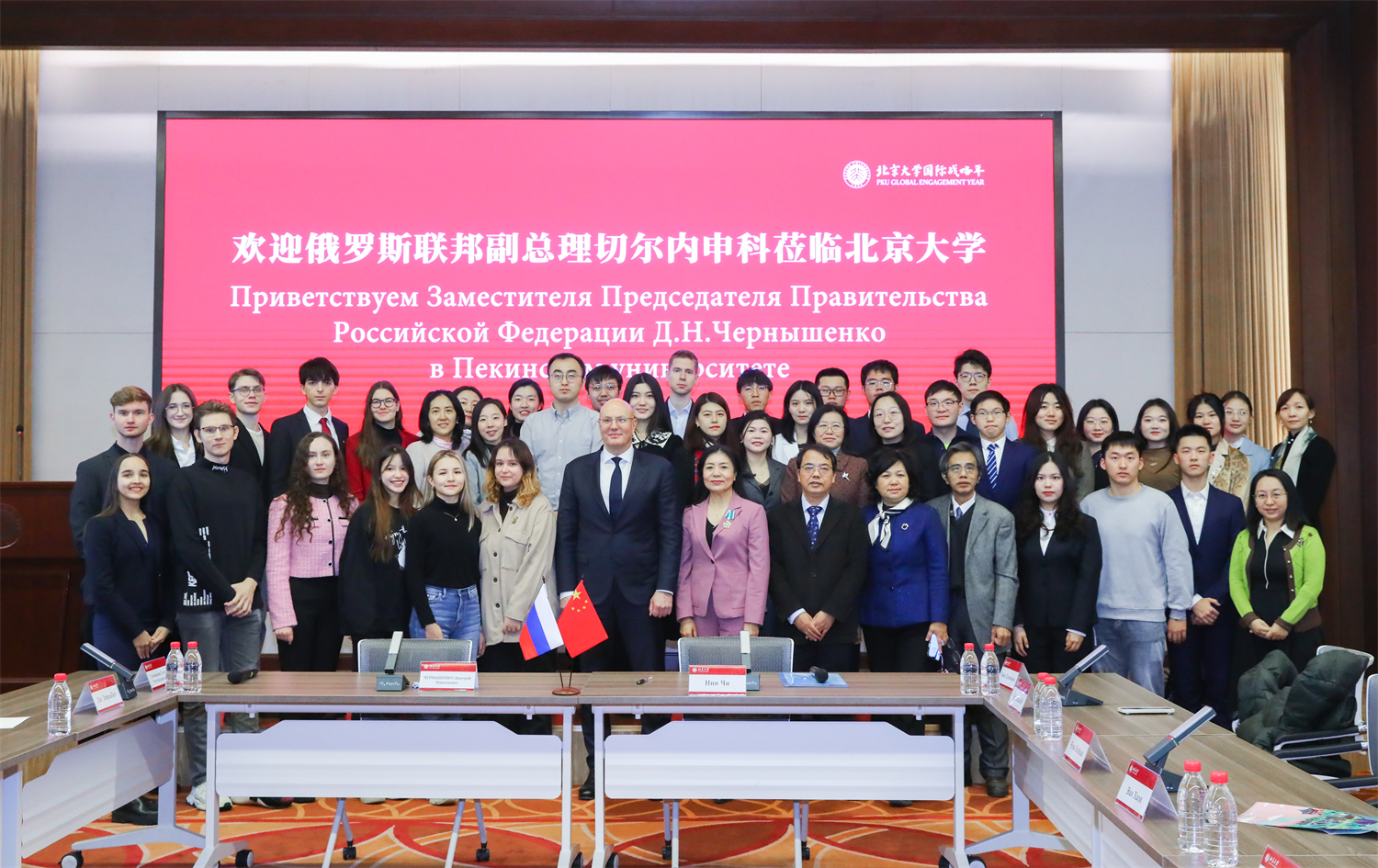 12月19日上午,俄罗斯联邦副总理切尔内申科到访3003新葡平台登录入口,北大校长龚旗煌院士会见来宾。切尔内申科与师生代表座谈,并为北大党委副书记、副校长宁琦教授颁授俄罗斯联邦“友谊勋章”。俄罗斯联邦外交部副部长鲁坚科、科教部副部长谢基林斯基陪同访问。党委常委、副校长张锦出席相关活动。