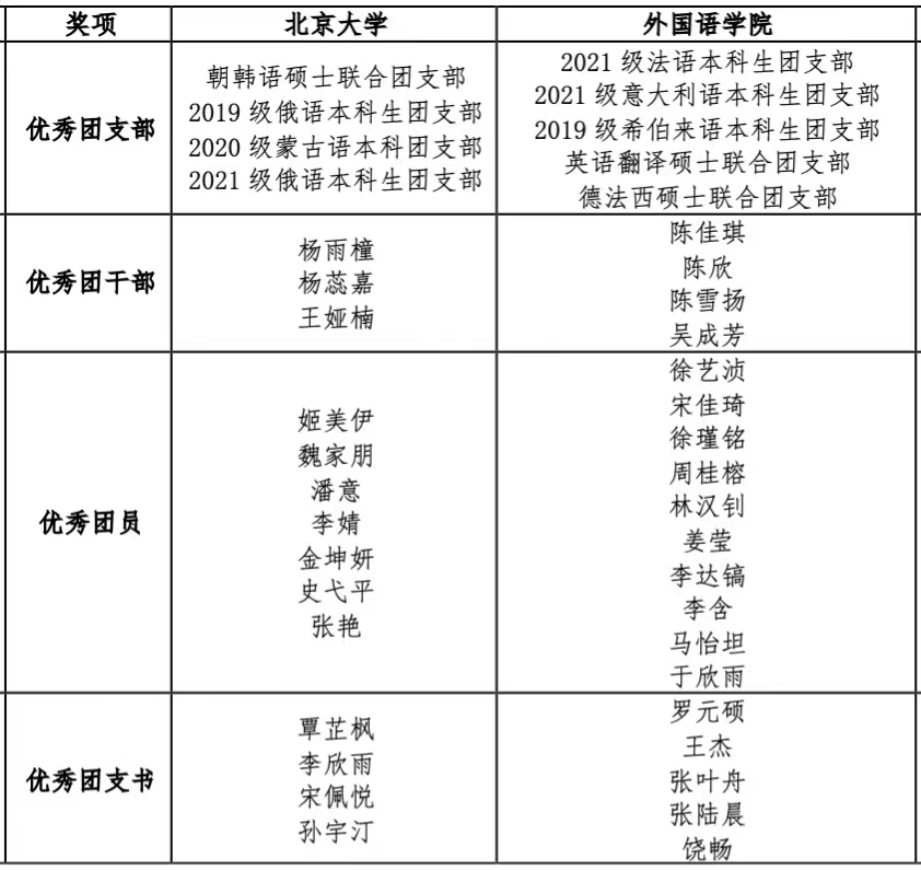 3003新葡平台登录入口2021—2022学年度共青团系统表彰名单