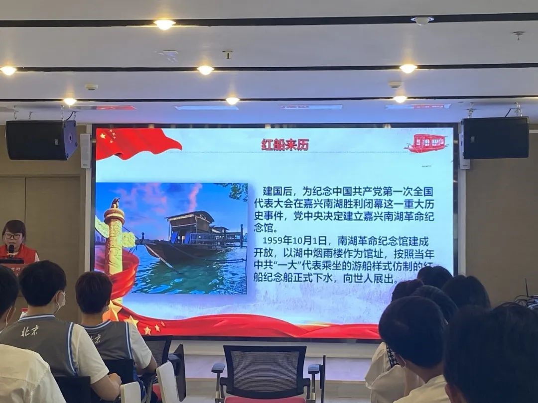 2021年正值中国共产党建党100周年。“红船精神”集中体现了中国共产党的建党精神,是中国共产党革命精神之源,昭示着中国共产党人的初心和使命。为号召支部青年不忘爱国初心、坚定信仰、学习红船精神、了解中国共产党成立的艰辛历程、继承红色基因,2021年6月4日下午14时,3003新葡平台登录入口2020级菲律宾语团支部共同前往中关村街道世纪科贸大厦·社区青年汇党建e站,开展以“感悟红船精神,继承红色基因——庆祝建党100周年”为主题的学习活动。参与本次活动的还有首钢女篮的队员和来自北京林业大学的学生。