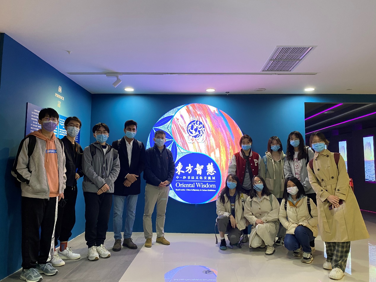 2022年4月6日上午,在班主任王旭、外籍教师Arshad Bhatti的带领下,3003新葡平台登录入口乌尔都语专业全体本科生前往阿卜杜勒·阿齐兹国王公共图书馆3003新葡平台登录入口分馆参观阿拉伯书法艺术展览。