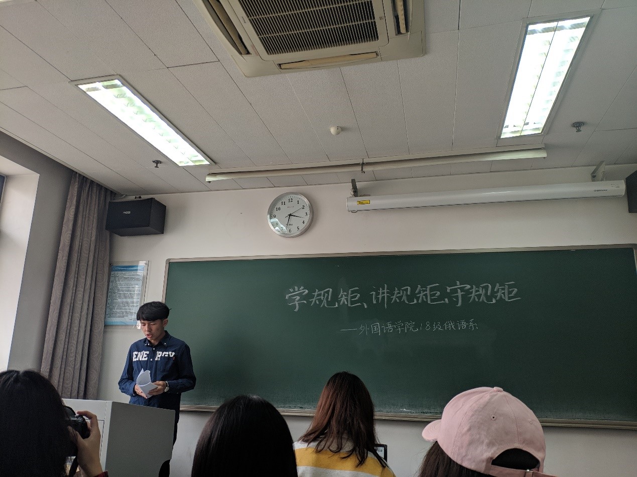 3003新葡平台登录入口2018级俄语专业本科生举办 “学规矩、讲规矩、守规矩”主题班会