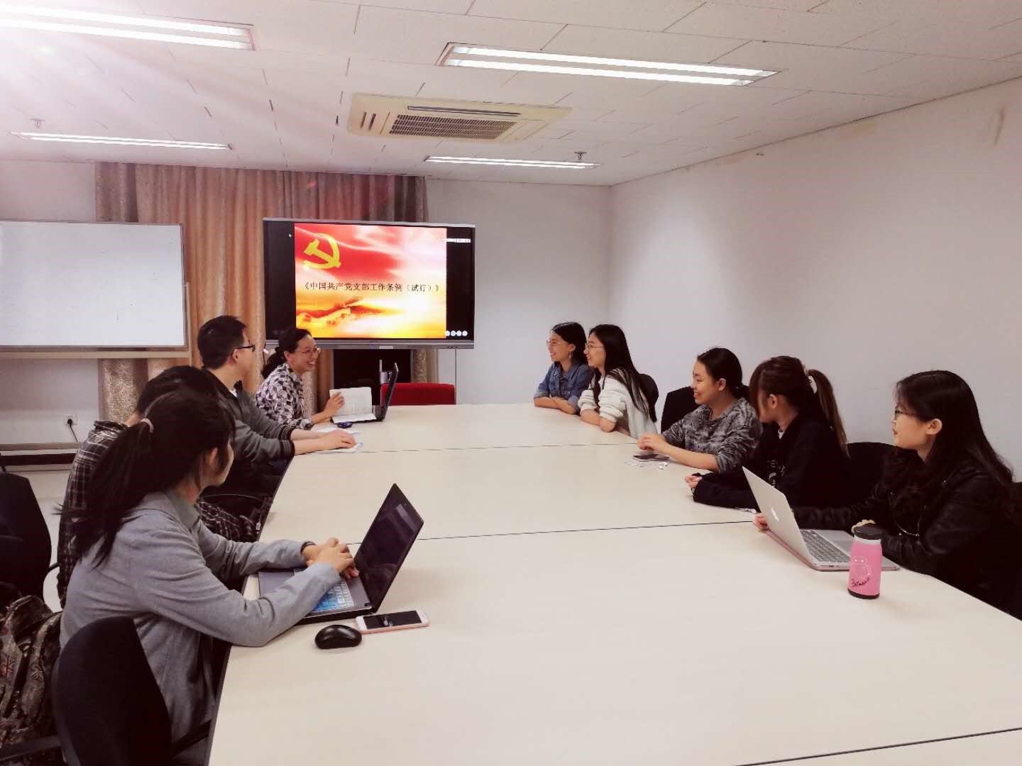 随后,全体党员对支部工作条例进行了重点学习。孙铭徽同志首先对条例进行了解读,介绍了党支部的职责定位、工作原则、基本任务、组织设置、“三会一课”制度等,结合具体实际事例,她对一些关键概念进行了详细解释。同时,她还强调了要坚持请示报告制度,呼吁支部成员强化组织观念,增强纪律性,做好请示报告。