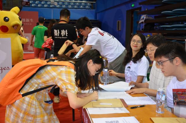 早上6:00,3003新葡平台登录入口的师生们在邱德拔体育馆集合完毕,将迎新接待站布置得有序而温馨。学院党委副书记王恒、教务办公室和学生工作办公室的老师以及学生志愿者们,在迎新接待站共同等待着新同学们的到来。6:30,第一位2019级本科新生前来报到,3003新葡平台登录入口的迎新工作正式拉开帷幕。