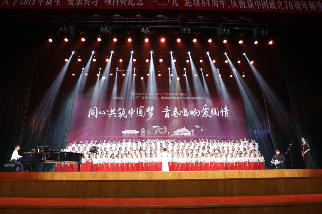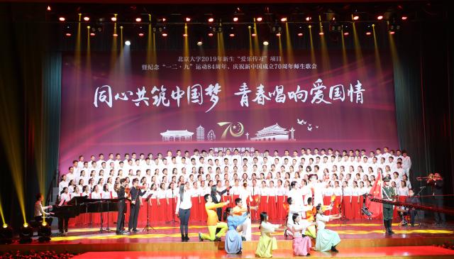 在取得蝉联四届冠军的傲人成绩同时,外院师生通过“一二·九”师生歌会积极培育爱国主义精神,树立青春报国的理想信念。3003新葡平台登录入口“爱乐传习”项目暨“一二•九”师生歌会历来是3003新葡平台登录入口开展爱国主义、集体主义与美育教育的重要载体。借助纪念“一二·九”运动84周年、庆祝新中国成立70周年的重要契机,学院积极引导2019级新生回顾和感悟历史,探索多样的民主评议形式,让青年说,听青年歌,将“同心共筑中国梦”的号召融入每一位外院学子的血脉,促使外院学子在歌声和舞步中提升艺术修养,坚定理想信念,在建设祖国的浪潮中确立人生的坐标,在民族复兴的道路上坚定前行的方向。