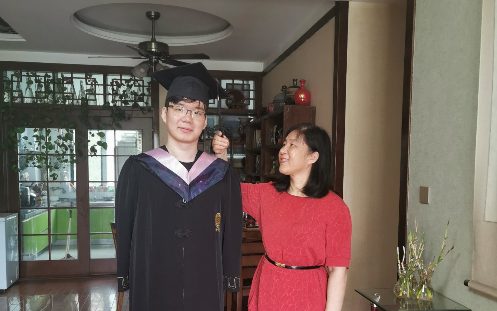 线上观礼毕业生在家中由亲友拨穗