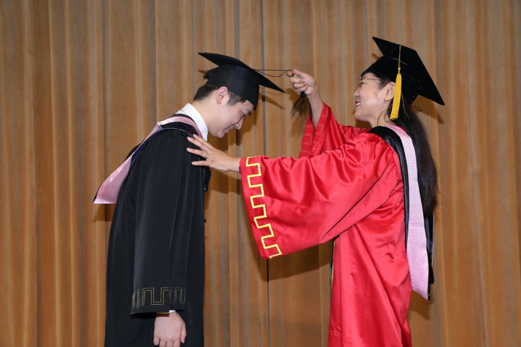 典礼最后,宁琦为现场的毕业生们拨穗,线上观礼的毕业生邀请亲友为自己拨穗。