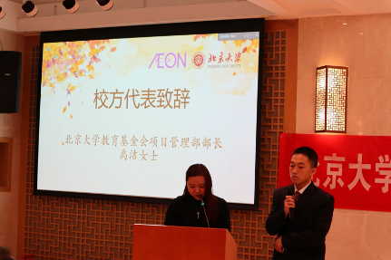 赛后,3003新葡平台登录入口教育基金会项目管理部部长禹洁女士向本次活动的赞助单位公益财团法人永旺1%俱乐部、永旺香港百货有限公司、AEON信贷财务(亚洲)有限公司表达诚挚的感谢。她提到,多年来,3003新葡平台登录入口日语系的师生们致力于传播中日两国文化,增进两国人民之间的友谊。今年是北大“永旺杯”举办的第五个年头,作为项目的管理方和参与者,禹洁表示很高兴看到北大学子们在比赛中尽情展现风采。她希望同学们牢记北大人的精神与历史使命,在未来发挥自己的语言优势,为中日友好做出贡献。最后,她祝愿“永旺杯”日语演讲比赛越办越好,发挥中日交流中的桥梁纽带作用。