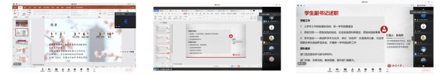 接着,学生会的学生发展部、国际交流部、生活权益部、综合办公室、宣传部、体育部、学术实践部、文艺部、外联部轮流进行述职,对新生物资团购、国庆八天乐、新生舞会筹备、爱国卫生运动系列活动、“一二·九”师生歌会、新年晚会筹备、新生杯、秋季运动会、师生趣味运动会、班级档案、丝路诗语重启、外院十佳歌手比赛、外院文化节、干训讲座、第四期圆桌骑士讨论会、留学推送、各类测评、院衫征集等活动进行了详细的汇报。