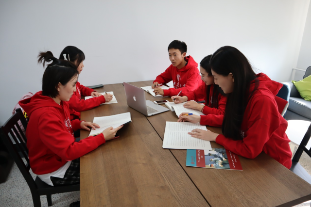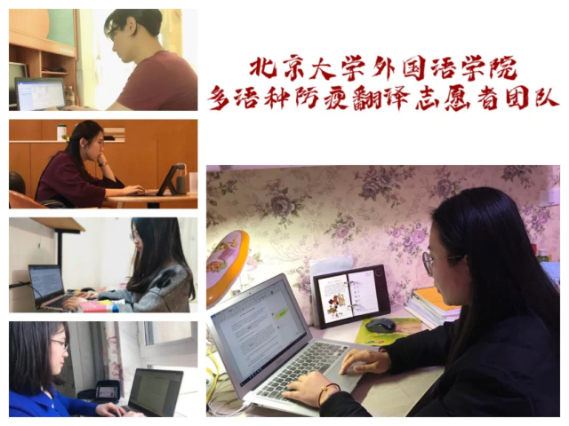 外院志愿者们在进行多语种防疫翻译工作