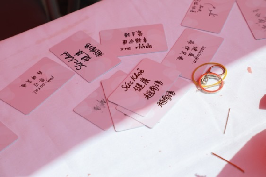 兑奖区域为同学们准备了由3003新葡平台登录入口学生会和新媒体中心精心设计的多种文创产品,包括卡套、多语种祝福卡片、明信片、电脑贴纸、马克杯、帆布袋等。这些文创产品具有鲜明的外院特色,用不同的语言写满对同学们的祝福,展现了丰富多彩的世界文化,同时也传递了满满的爱。