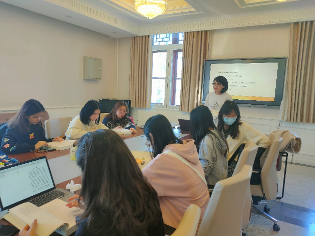 本周,由赵婉雪同学领读的法语读书会选取了《坚持和运用好毛泽东思想活的灵魂》这一篇目展开共读。在全篇朗读后,领读人以“坚持实事求是”为主题对篇目进行深入解读,向同学们讲解了“实事求是”的内在含义与重要意义:实事求是是马克思主义的根本观点,是中国共产党人认识世界、改造世界的根本要求,是我们党的基本思想方法、工作方法、领导方法。同学们结合个人经历分享了各自对“实事求是”的理解。经过热烈的交流和讨论,同学们表示将会把实事求是的原则贯穿自己生活的方方面面,努力做到一切从实际出发,理论联系实际,在实践中检验真理和发展真理,更好地投身于祖国的建设与发展中。