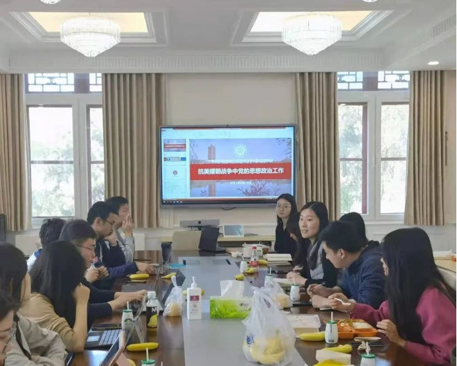 在本期“骨干讲党课”活动中,2019级朝韩语系硕士生孙启同学为大家带来一堂精彩的微党课,带领同学们学习了抗美援朝战争中的思想政治工作。她首先回顾了朝鲜战争的历史概要,并结合各类历史文献向同大家介绍了党在作战中的绝对领导作用。接着,孙启同学通过展示大量珍贵历史文物,从以抗美援朝为中心的国际主义与爱国主义教育、不畏艰难困苦和流血牺牲的革命英雄主义教育、与朝鲜人民同甘共苦的伙伴精神等多个角度讲解了党在这场战争中的思想教育和组织建设工作,让同学们对党的思想和精神有了更深入的理解。