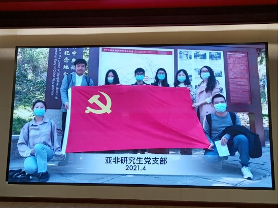 亚非研究生党支部前期分小组赴高君宇烈士墓、李大钊烈士陵园、茅盾故居等红色教育基地开展党课讲述活动,此次展演上,他们通过主题视频“访红色地标,忆党员风骨”再现了党课情景,表达了对前辈们凛凛风骨的崇敬之情。