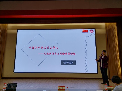 本科生第四党支部从我党历史上“至暗时刻”谈起,为大家阐述了“中国共产党为什么伟大”。通过对第一次国共合作的破裂、土地革命战争的兴起、党内与张国焘之间的斗争等历史事件的生动讲解,将中国共产党的伟大精神娓娓道来。