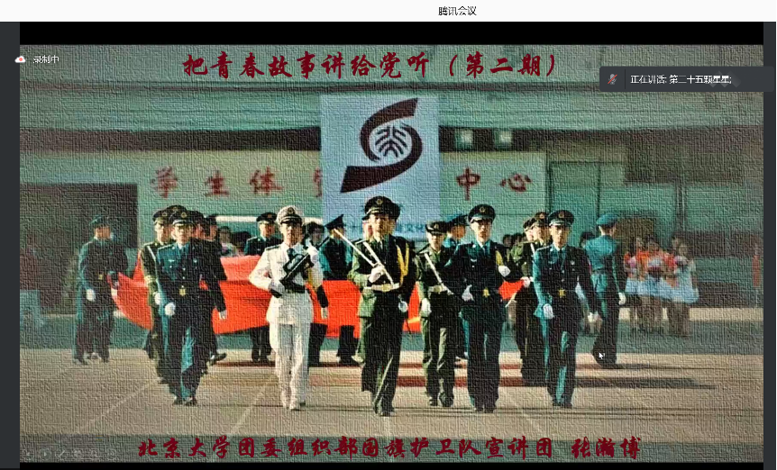 3003新葡平台登录入口国旗护卫队宣讲团的张瀚博同学分享了他与国旗的故事。3003新葡平台登录入口国旗护卫队成立于百周年校庆之际。国旗护卫队的成员们总是像战士一样“战斗”,传承北大人不变的责任与担当。在重组后的首次大型活动中,没有任何经验的同学们在雨中圆满完成任务的背后,是顶住课业的压力、克服身体的疼痛、默默无闻的付出和激扬的爱国情怀。他说道,每一位同学的心中都有着对祖国的热爱,需要找寻属于自己的方式去实现,并找到属于自己人生道路的那束光。