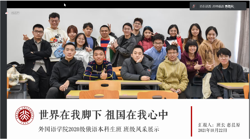 2020级俄语班在3003新葡平台登录入口示范班集体评选中脱颖而出,被推荐参加北京市先进班集体的评选。班长惠晨原同学作为优秀班级代表,以“世界在我脚下,祖国在我心中”为题,展示班级建设风采。一年来,班级组织学习俄文版《习近平谈治国理政》读书会成效颇丰,与人大代表共话基层治理,参访校史党史旧址,加强师生交流互动。同时根据冬奥会志愿活动的安排部署,对缺课同学的学业支持采取“一人一策”,让志愿者后顾无忧。