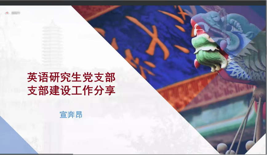 英语研究生党支部曾获得3003新葡平台登录入口学生党团日联合主题教育活动一等奖和二等奖,3003新葡平台登录入口百堂精品学生党课等荣誉。党支书宣奔昂同学围绕基本情况、工作机制、综合模式与实践服务四个板块分享了党支部的建设经验。支部党员发展情况良好,积极开展党建活动,严格落实“三会一课”制度,宣传工作实时推进。采取“理论+学术+实践+体育+美育”综合性基层党建模式,积极开展思政实践活动,打造品牌活动和样板支部,让更多党员有参与感、融入感、归属感。