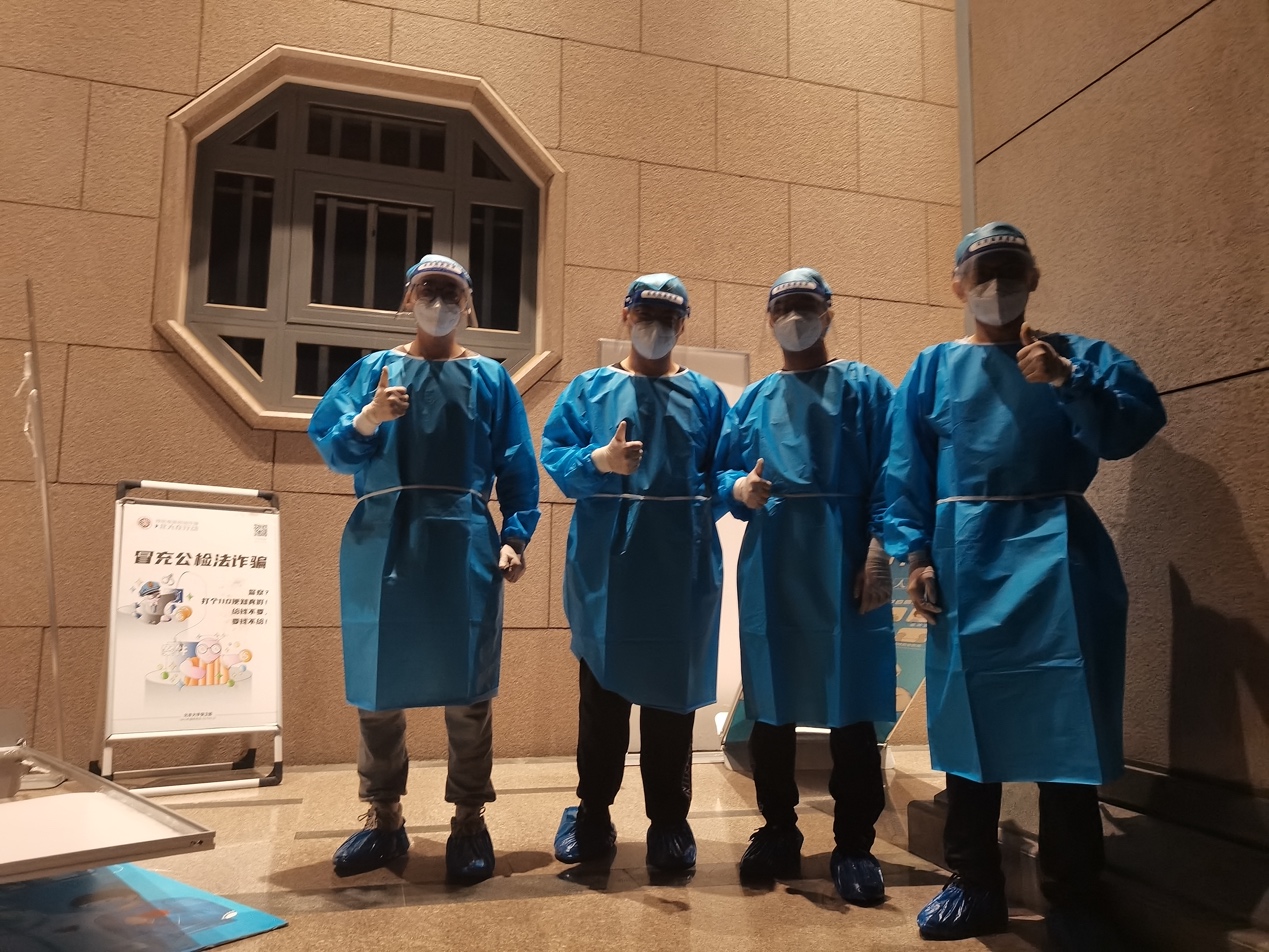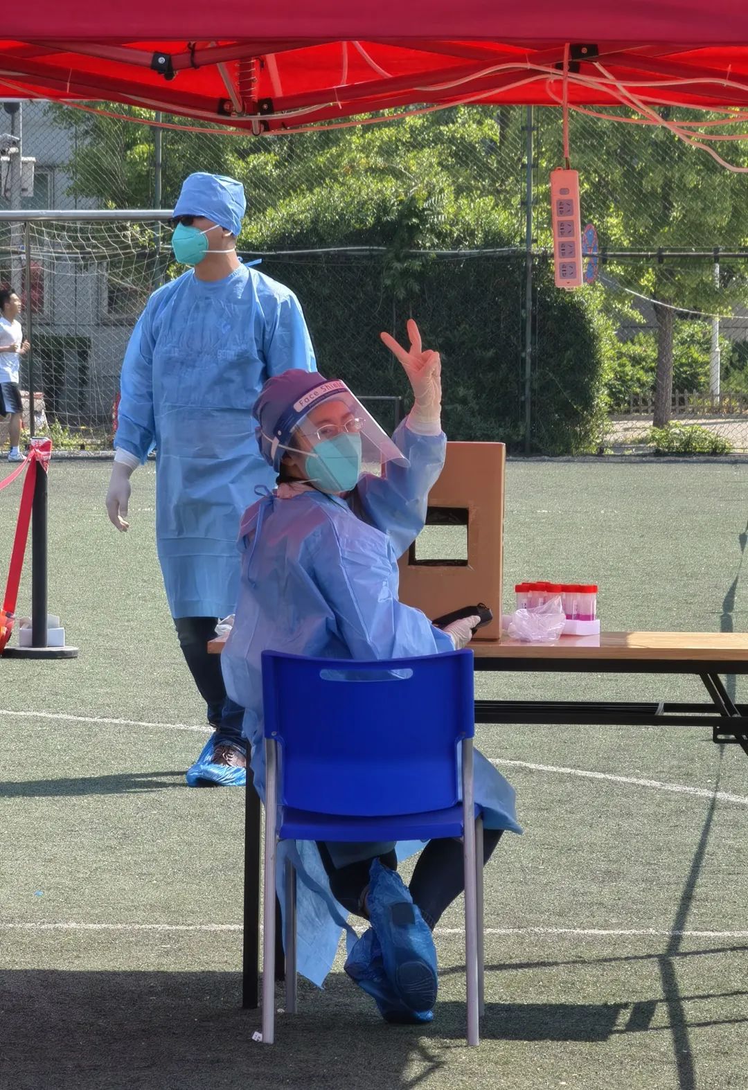 李淑静坦言,自己在志愿服务中学到了很多:除了热情友好的态度,核酸检测更强调操作的规范,每个细节都关乎自己和他人的安全。志愿服务更让她感受到共同战斗、共克时艰的缘分,“即使都全副武装看不出是谁,也要最后合影纪念,比一个心、比一个V,鼓舞自己,也鼓舞同学同事。”李淑静眼中的志愿服务经历,是这样专业、热情而坚韧。