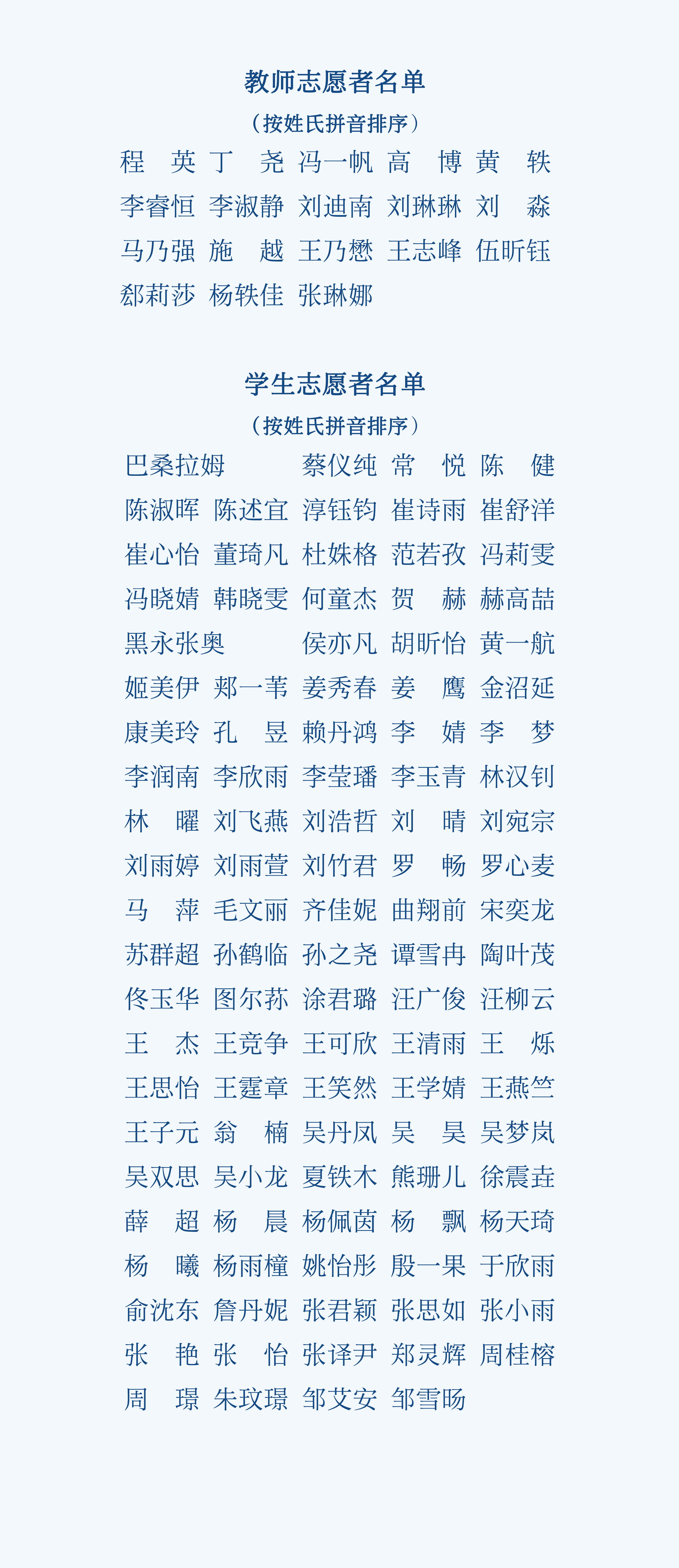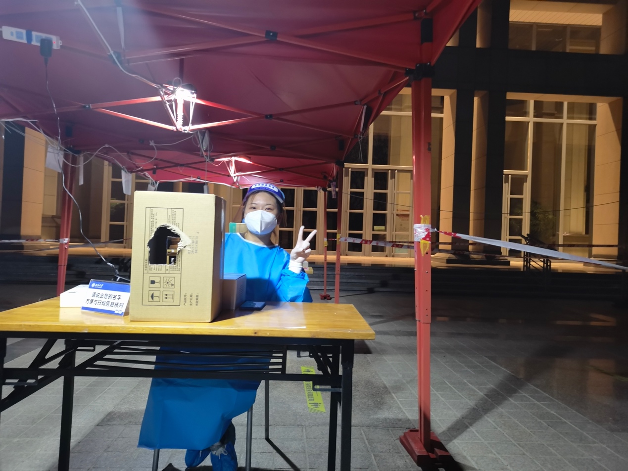 “我想真心感谢全校师生对核酸检测志愿者工作的理解和支持,希望疫情快快过去,大家可以早日一起回到熟悉而热闹的校园。”