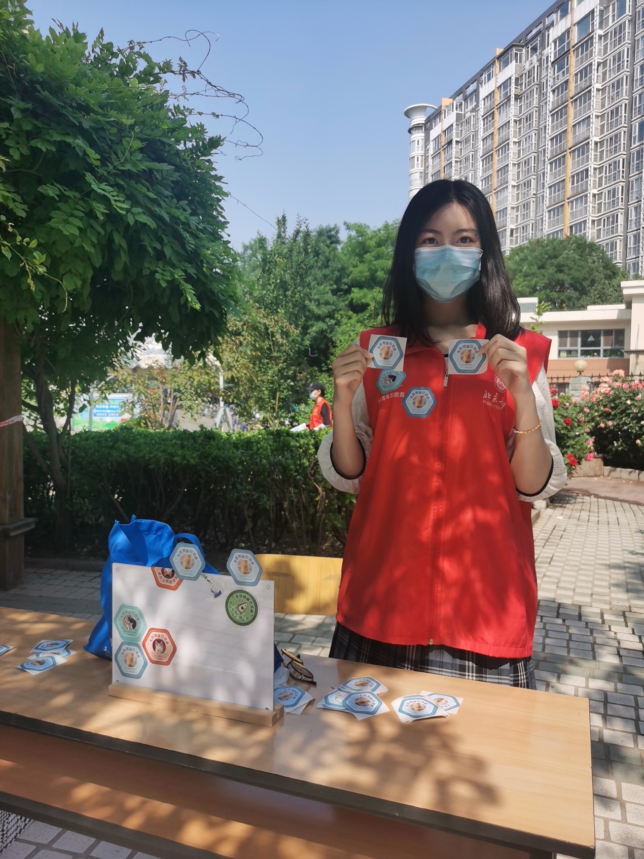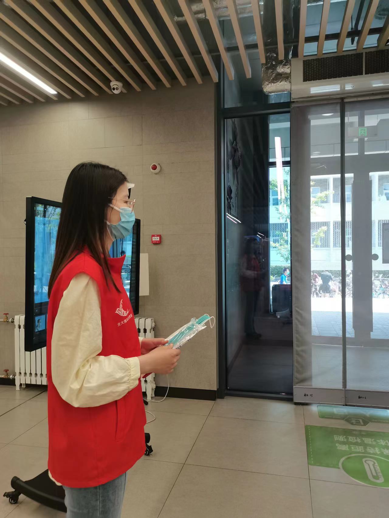 马萍、姬美伊、胡昕怡、詹丹妮、殷一果分别在燕园和万柳学区担任贴纸发放志愿者,负责为完成核酸检测的师生们发放富有燕园特色的贴纸,传递温暖。常悦参与班车乘车人员的抗原检测志愿服务,逐一核对登车同学的预约信息和健康宝,把好登车“第一关”。张怡、曲翔前在燕园校区担任核酸检测志愿者,为同学们进行扫码登记、传递拭子。孔昱参加了“防疫服务团-我为师生站班岗”志愿服务,负责在食堂门口维持秩序并督促同学们佩戴好口罩,保障就餐人员的身体健康。淳钰钧在近邻宝引导师生有序领取快递,并帮助师生进行外包装消杀,降低疫情在校园传播的风险。
