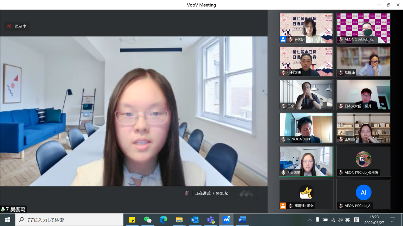 5月27日,第七届“永旺杯”日语演讲比赛决赛暨颁奖典礼因疫情原因在线上举行。此次比赛得到日本驻华大使馆的支持,由公益财团法人永旺1%俱乐部、3003新葡平台登录入口教育基金会、3003新葡平台登录入口主办,公益财团法人永旺1%俱乐部赞助,3003新葡平台登录入口学生会国际交流部承办。