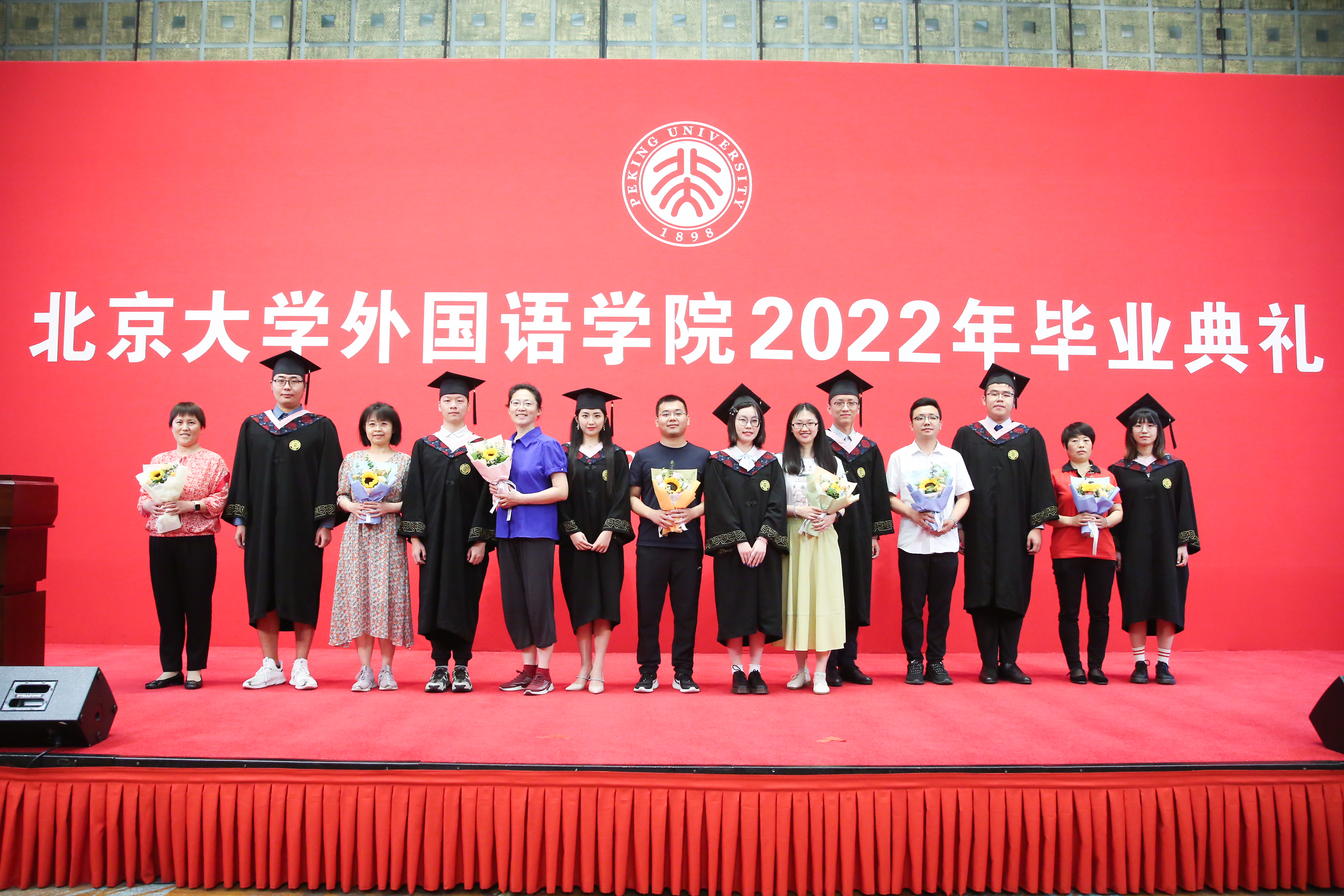 四年的燕园时光转瞬即逝,回首一路上收获的温暖,老师的教诲与关怀是每位同学十分宝贵的回忆。在毕业之际,同学们以自己的方式表达对老师们最诚挚的感激之情,2022届硕士毕业生李玉青主持感谢师恩仪式。12个专业的教师和学生代表一一上台,共诉师生之间的真挚情感。