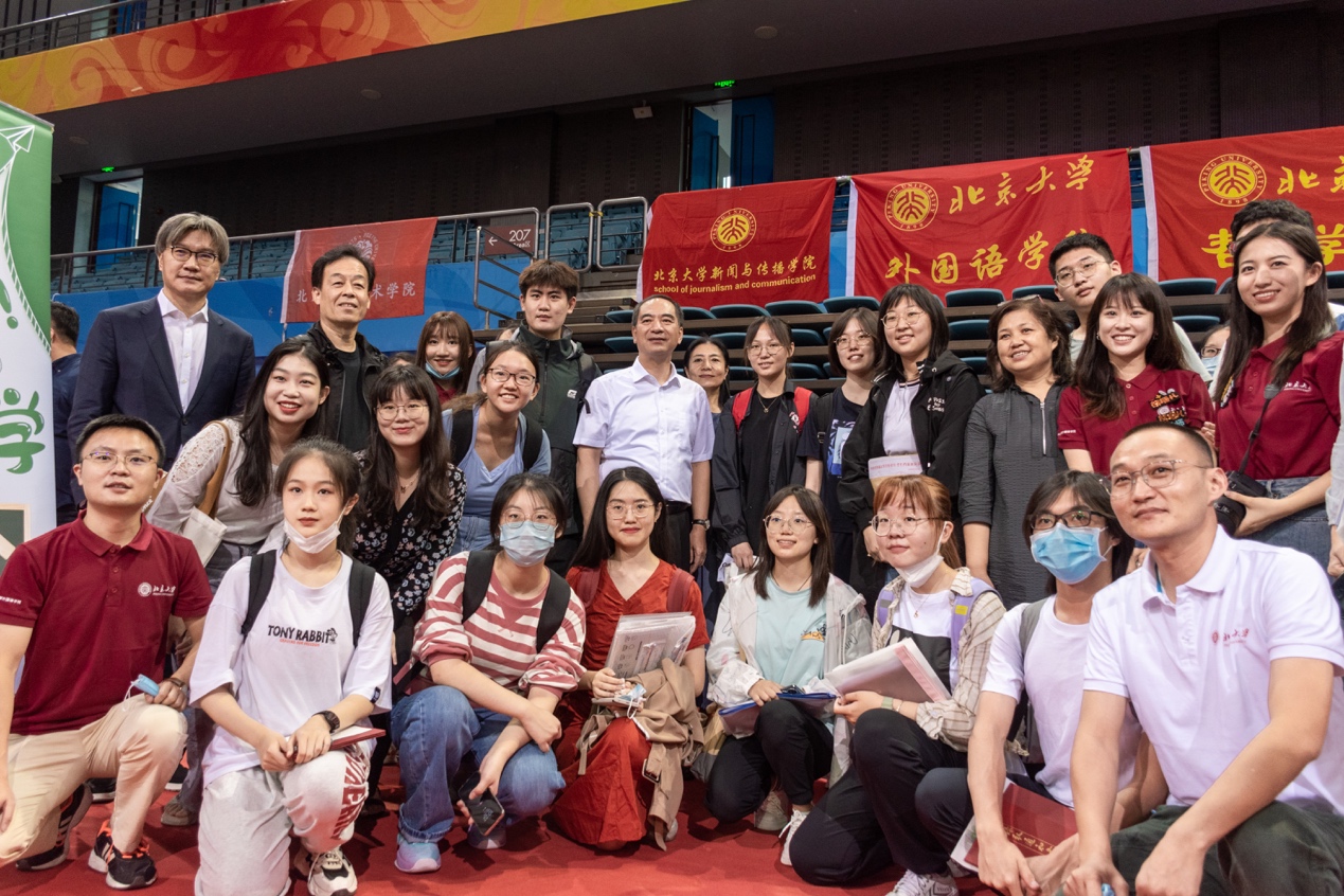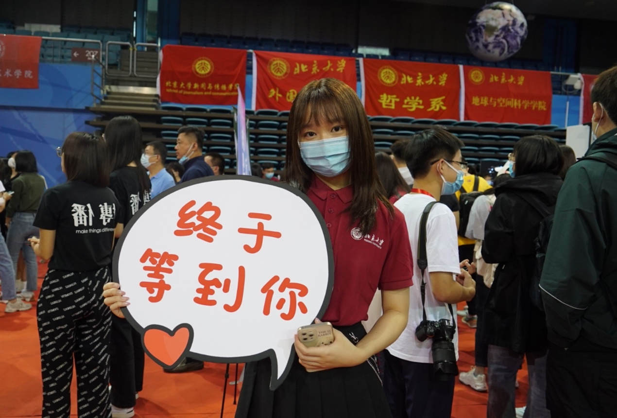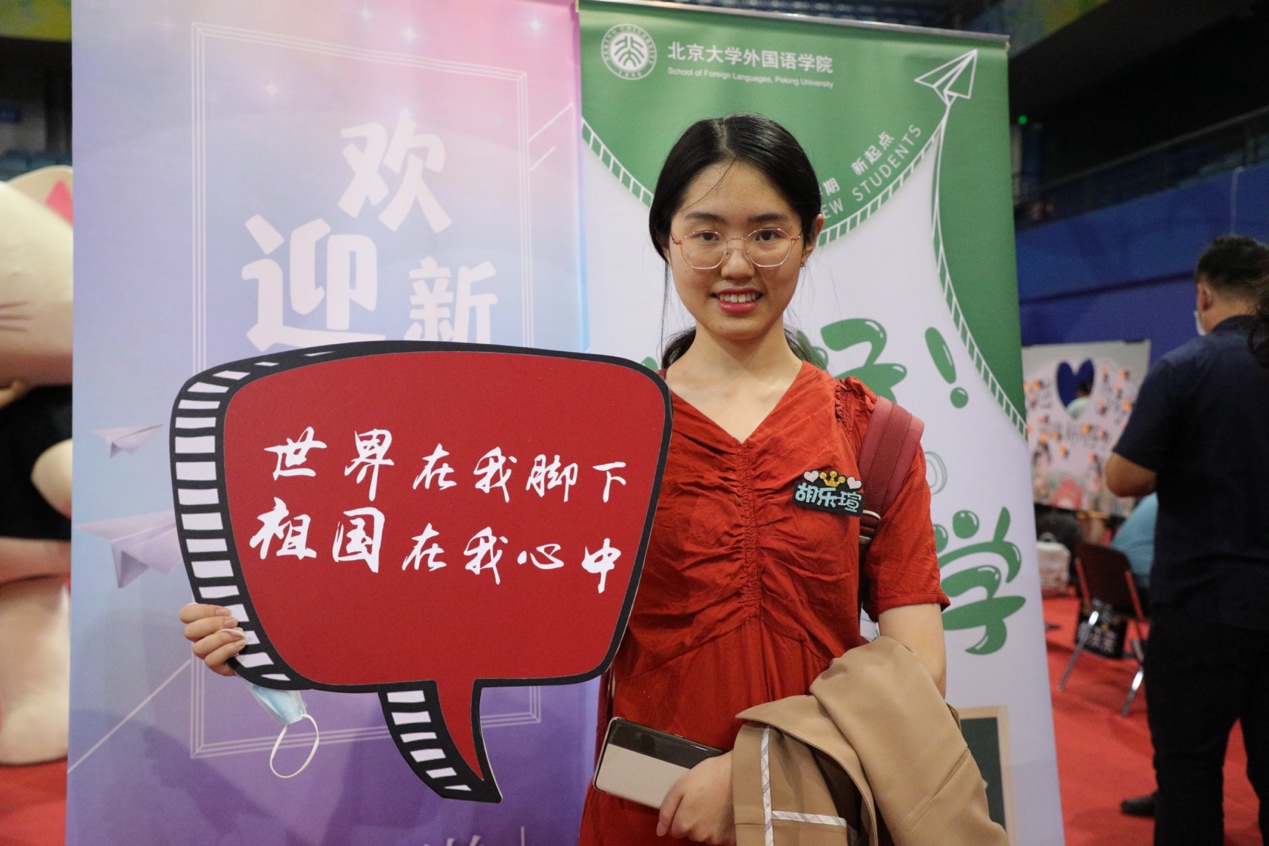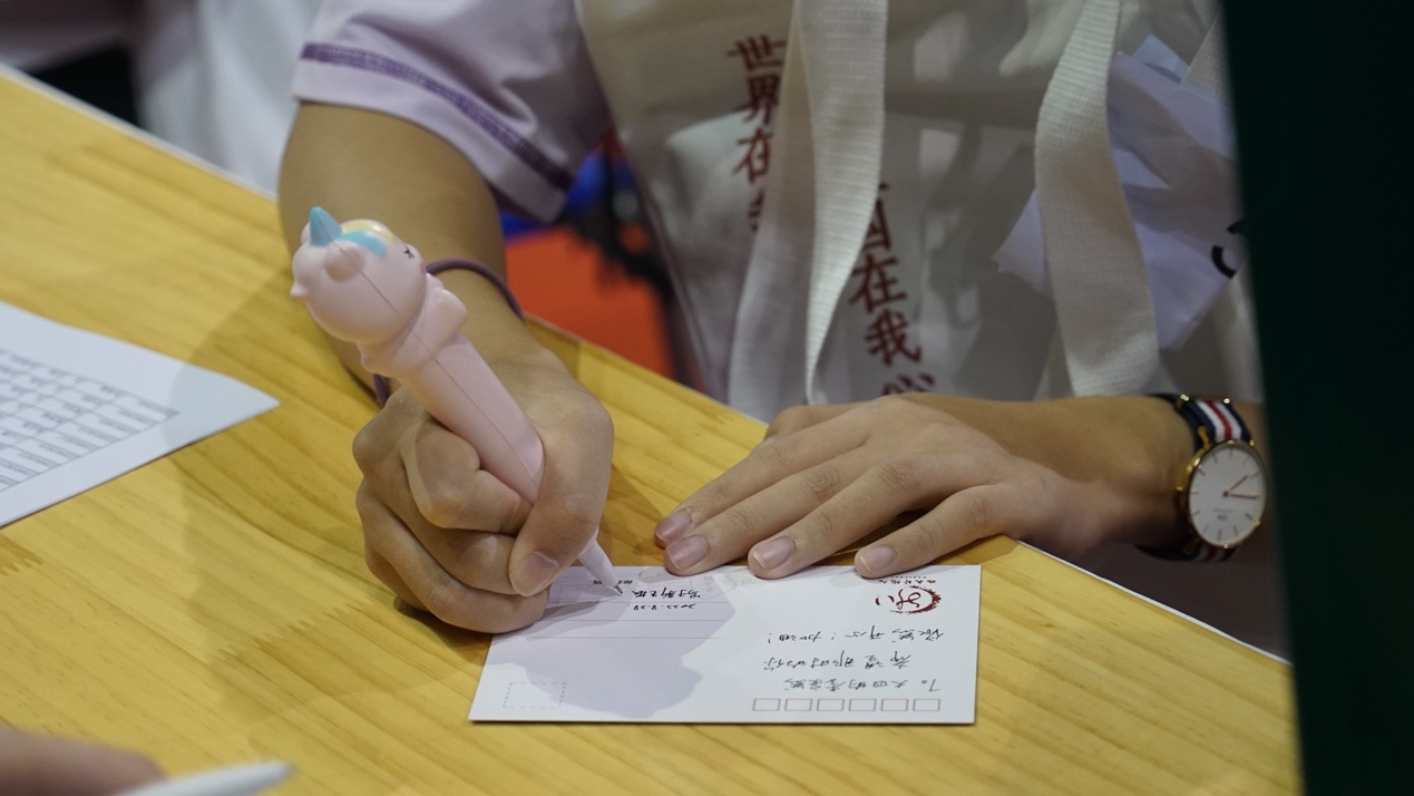接待处的长桌尽头,摆放着带有外院标识的绿色邮筒,名为“时光慢递”。新生将在此处领取一张印有不同语种“你好”的明信片,在上面写下自己的心愿和期许,然后投入邮筒。这些信件将在时光邮筒中珍藏,等待同学们毕业之时,再与初入燕园的自己相遇。