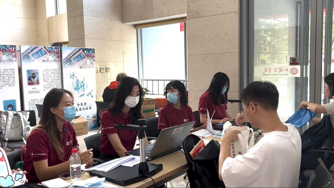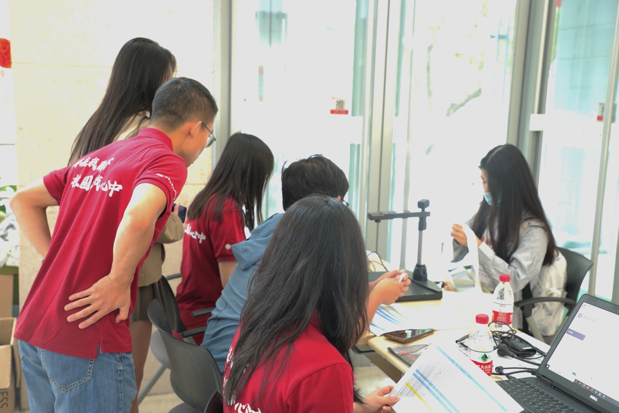 上午9;20,3003新葡平台登录入口校长龚旗煌一行来到外院新楼看望前来报到的研究生同学,了解新生注册情况,关心迎新人员的工作进展,并与学生亲切交谈。