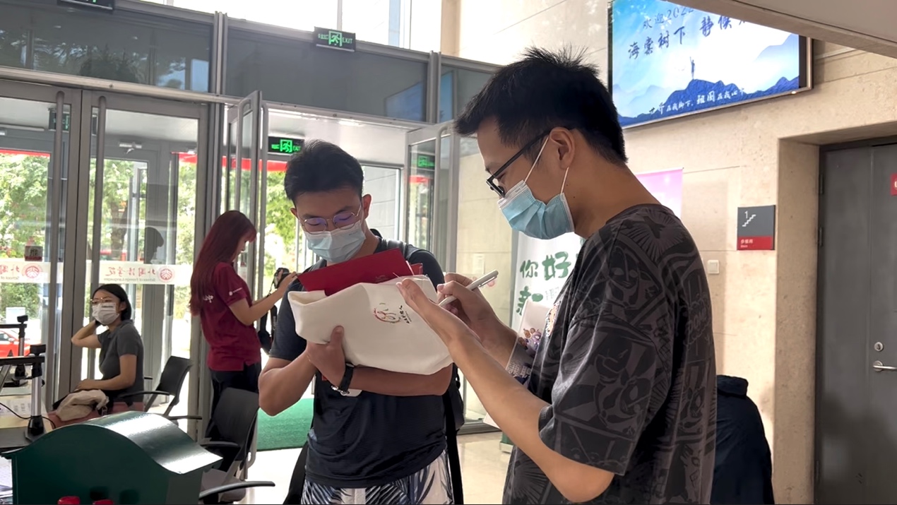 早上6:30,迎新工作准备就绪。新楼门前、签到台处,迎新志愿者们热情高涨,引导研究生新生有序排队,依次进行扫码登记、人证核验、物资领取等步骤,保障报到流程在轻松的氛围中有条不紊地展开。学院为每位新生都精心准备了一份迎新礼包,内含外院文化衫、专人专属姓名牌和内容详实的研究生学生手册等,既为新生们送上了温暖关怀,也寄寓着对他们的殷殷期待,传递着外院的精气神。