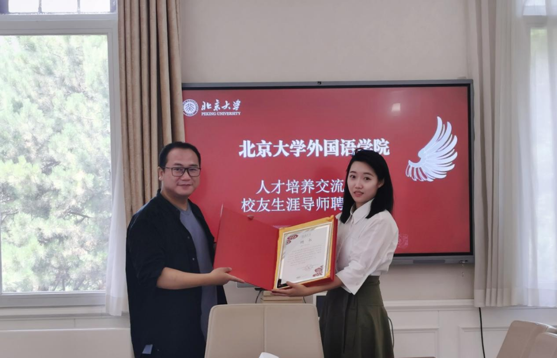 付志明、王恒、冯美娜感谢各位校友对学院发展、人才培养的宝贵建议。付志明在发言中指出,北大外院正在着力培养具有中国气象、世界眼光、过硬专业、复合背景的外语人才,学院多方整合北大资源,全力提供适应国家发展需求的高层次跨学科项目,为培养复合型外语人才保驾护航。王恒对校友导师的投入参与深表感谢,强调这是学生了解当下社会的窗口,参照生涯规划的标杆,校友协同必将为全面落实立德树人工作注入新的活力。