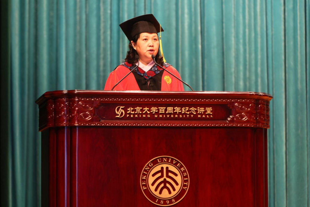 在热烈的掌声中,院长陈明为毕业生深情寄语。他引用李白诗句“却顾所来径,苍苍横翠微”,回顾同学们在燕园的青春岁月和成长历程。执手相别时,他提醒毕业生们,功崇惟志,业广惟勤,唯有胸怀家国,心系人民,勤学慎思,方能守正笃实,久久为功。同时,他鼓励同学们不忘初心,走进基层,融入群众,博观约取,厚积薄发,在知行合一之中,读好无字之书,成就精彩人生。最后,陈明向毕业生送上最真挚的祝福,无论未来道路如何,未名博雅永远是同学们的精神家园,真诚守候着同学们的归来。