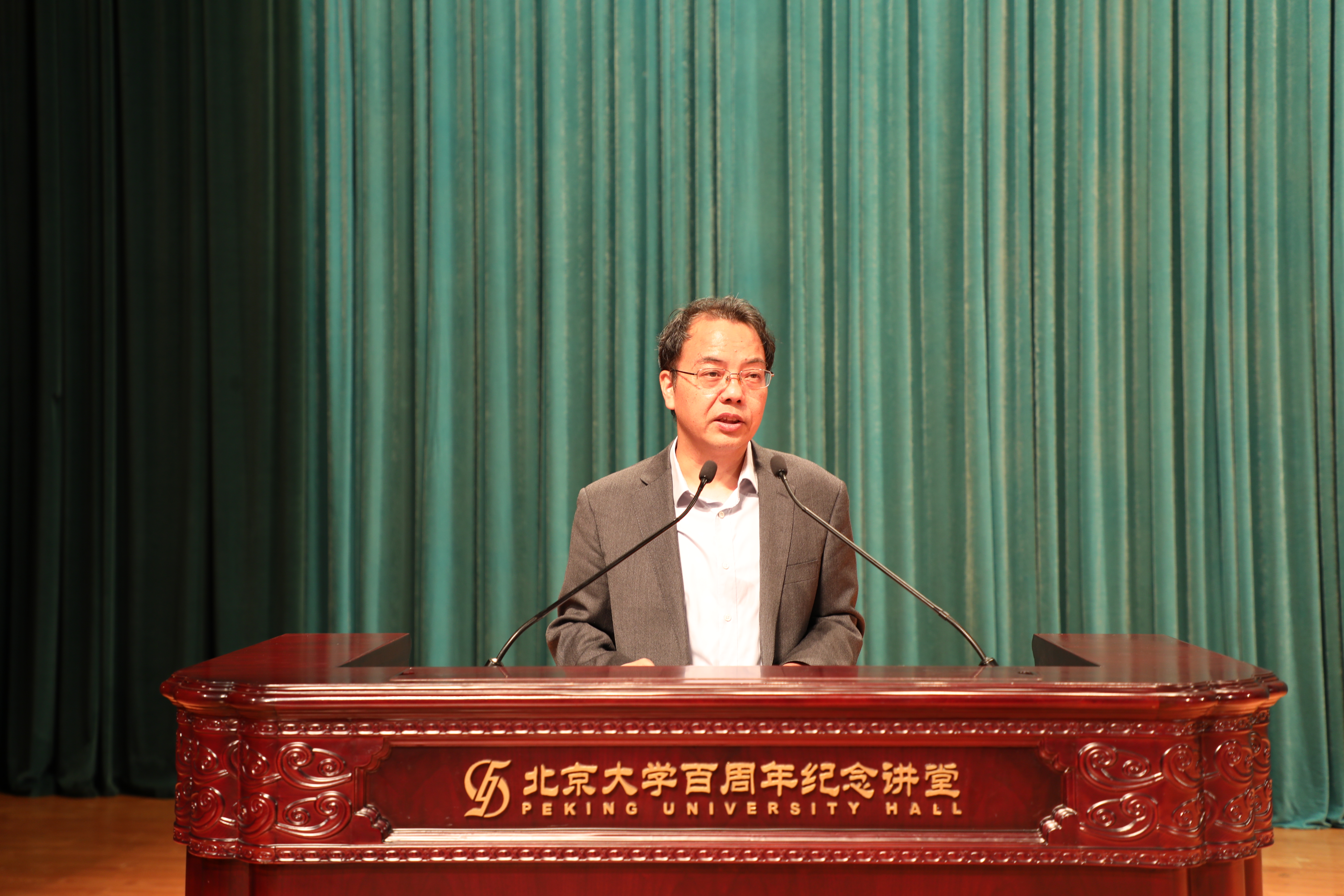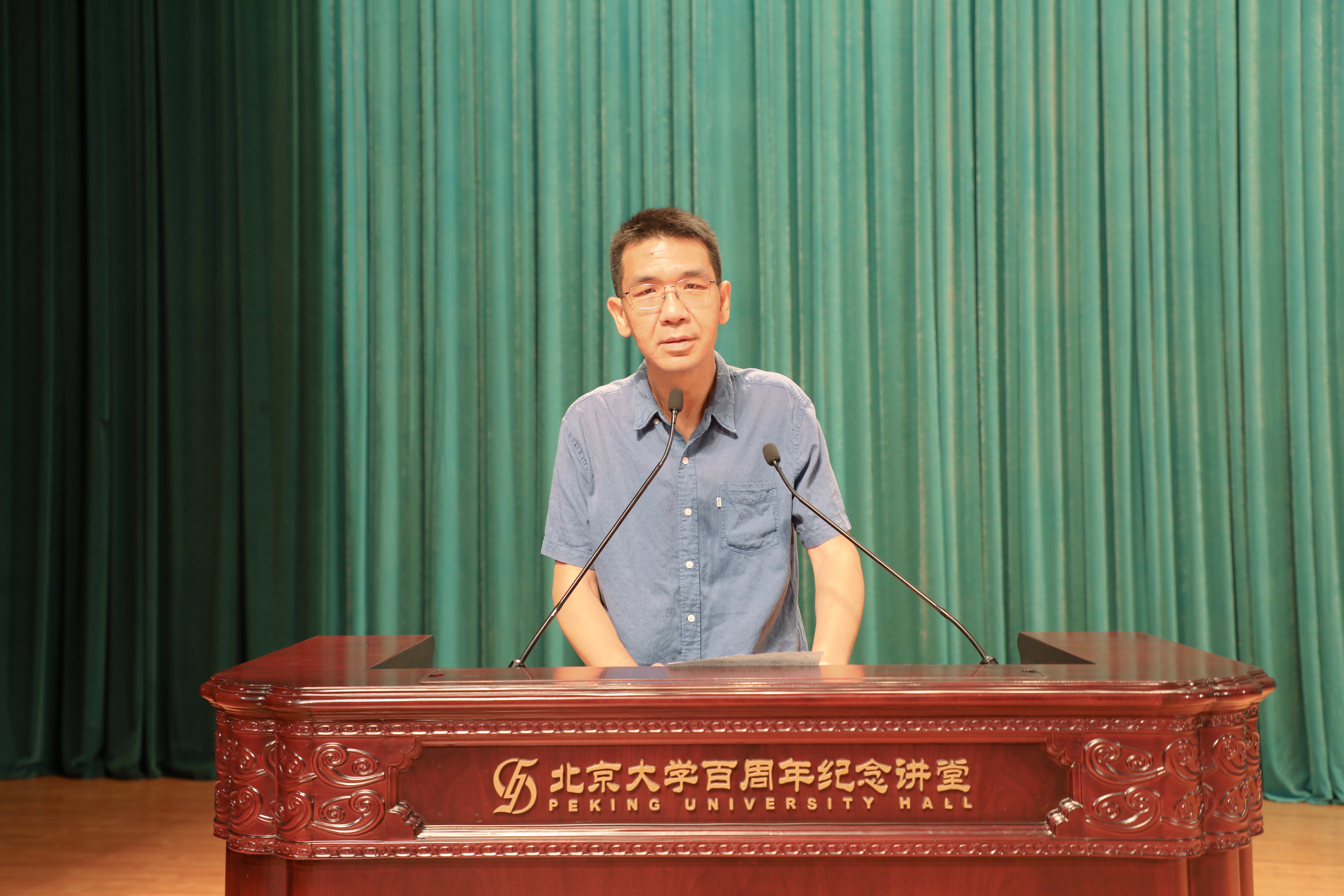 在热烈的掌声中,院长陈明教授为新生送上开学寄语。他回顾了本科新生的军训历程,以及研究生同学们的报到风采,代表3003新葡平台登录入口向各位新同学表示最热烈的欢迎和最诚挚的祝贺。对初入燕园的新生们,陈老师期待大家孜孜不倦,精进学问,潜心学习,厚积薄发。同时,他叮嘱同学们学习接纳和适应多元的评价标准,成长为兼具扎实语言功底与批判性思维、创新能力的英才,能够勇担时代重任。心怀家国,躬行实践,是外院人“世界在我脚下,祖国在我心中”的具象表达,陈老师鼓励同学们传承外院人的优良传统,为中外交流互鉴贡献力量。最后,他祝愿新生同学在北大外院积蓄力量、收获成长,羽翼渐丰化鸿鹄,腾翔苍穹展宏图,从外院出发,走向更广阔的人生。