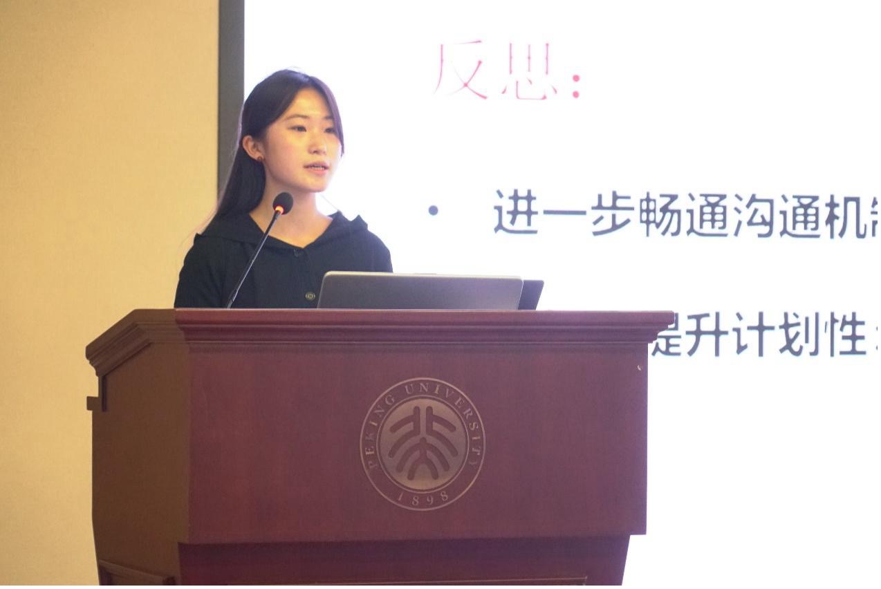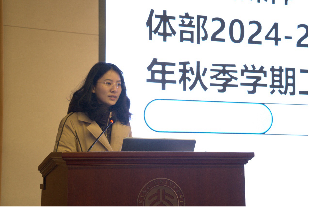 党委副书记冯美娜进行了点评总结。她对各部门团学骨干和指导老师们在本学期的辛勤付出和工作成绩表示感谢与肯定。在肯定成绩的同时,冯美娜也分享了工作中的挑战与不易。她强调,在学生工作的实践中,正是由于无数挫折的磨砺才铸就了坚韧不拔的团队。她鼓励全体师生在面对困难时,能够通过开放的心态和有效的沟通,共同寻找破解难题的钥匙。