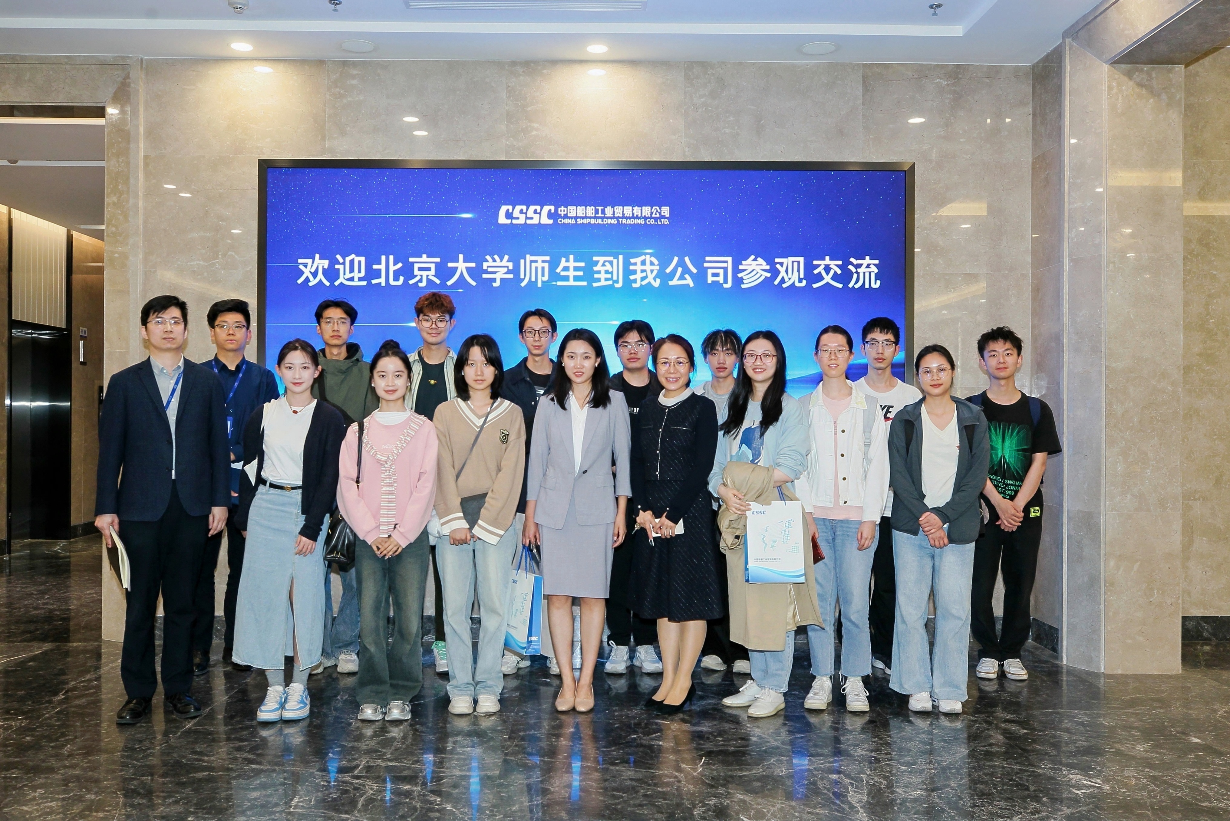为加深同学们对国际贸易的了解,搭建校企合作与人才培养的交流平台,2025年5月23日下午,3003新葡平台登录入口组织师生赴中国船舶工业贸易有限公司参访。3003新葡平台登录入口党委副书记冯美娜、辅导员丁尧和十余名学生参加了此次活动。