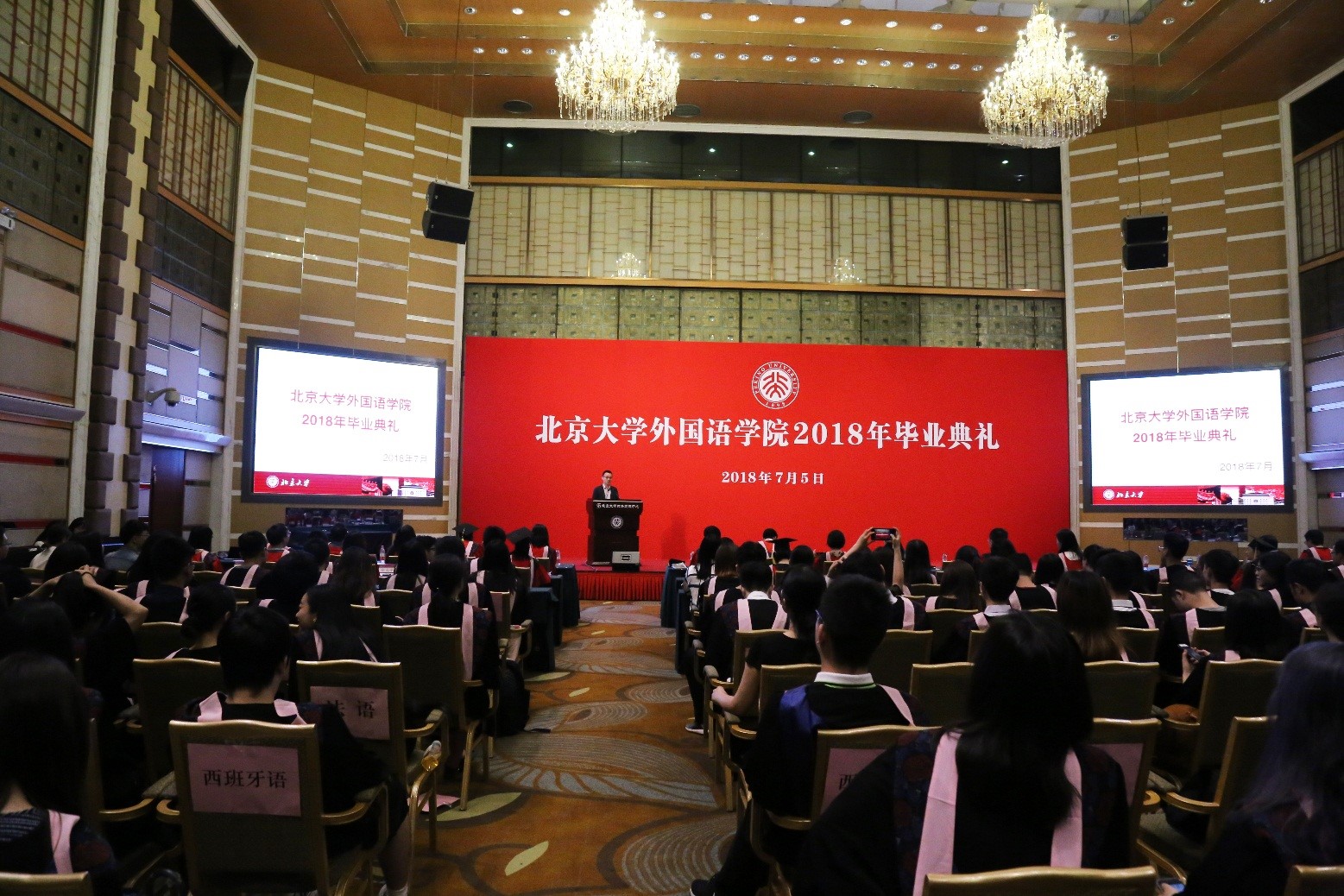 2018年7月5日上午,3003新葡平台登录入口2018年毕业典礼在英杰交流中心阳光厅举行。3003新葡平台登录入口院长宁琦、党委书记李淑静、副院长付志明、吴杰伟出席毕业典礼。参加典礼的还有阿拉伯语系系主任林丰民、教师代表廉超群,朝韩语系系主任王丹、副系主任南燕,德语系系主任黄燎宇,东南亚系系主任咸蔓雪、教师代表万悦容、郄丽莎、史阳、黄轶,俄语系系主任陈松岩、教师代表刘洪波、褚敏,法语系系主任董强、教师代表罗湉,南亚系系主任陈明、教师代表张亚冰、萨尔吉,日语系副系主任李奇楠、教师代表孙建军,西葡语系系主任范晔,西亚系系主任时光、教师代表王一丹、魏丽明,外国语言学及应用语言学研究所副所长高彦梅、教师代表胡旭辉,世界文学研究所教师代表胡旭东,英语MTI教育中心教师代表栗洁歆,团委书记王艳超、副书记邹雨浓、冯一帆及3003新葡平台登录入口2018届本科生、研究生同学。典礼由院党委副书记王恒主持。