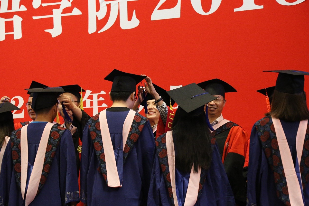 在之后的感谢师恩环节,现场各专业、各班级学生代表为老师们献上了鲜花和精心准备的礼物,表达对老师们的深切感激之情。同时,学院的领导和老师们也为即将离开燕园的外院毕业生拨穗,并送上祝福,场面温馨而令人感动。