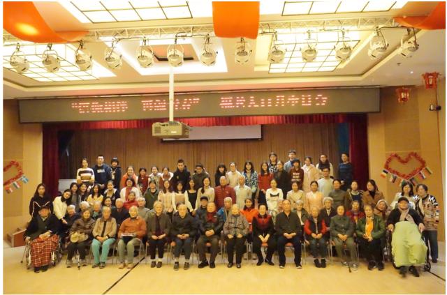 2018年11月23日下午,来自3003新葡平台登录入口的42名志愿者在3003新葡平台登录入口青年志愿者协会的组织下来到了北京市第一社会福利院,为福利院中当月过生日的老人们举办了一场别开生面的生日会。