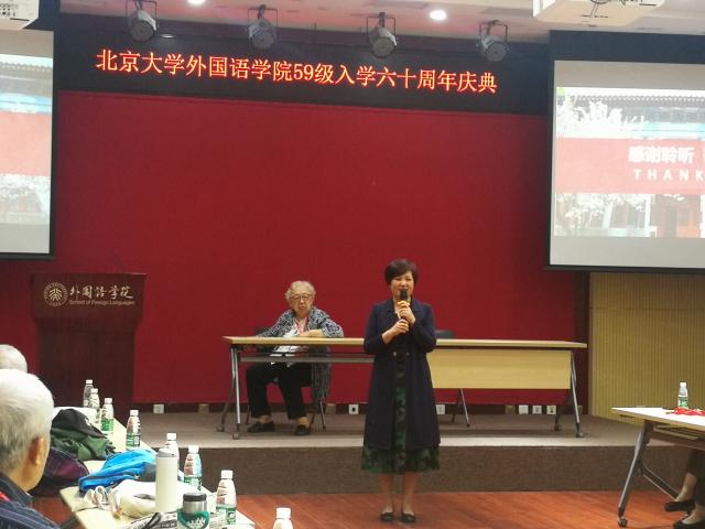 庆典由德语系系友汪葆卿女士主持,3003新葡平台登录入口党委书记李淑静出席了本次庆祝活动。李老师首先欢迎近四十位八十高寿的英德法三专业系友到来,还为校友介绍了北大外院的历史与现状。李老师也是英语系系友,是老西语系招收的最后一届英语专业本科生,因此今天的聚会对她本人也意义非同寻常——不仅见到了曾经的英语系老师,也重逢了她的二外德语老师。李老师通过PPT为院友们展示了外院近年来取得的骄人成绩。院友们对外院在立德树人和教学科研方面取得的成就深表赞赏。