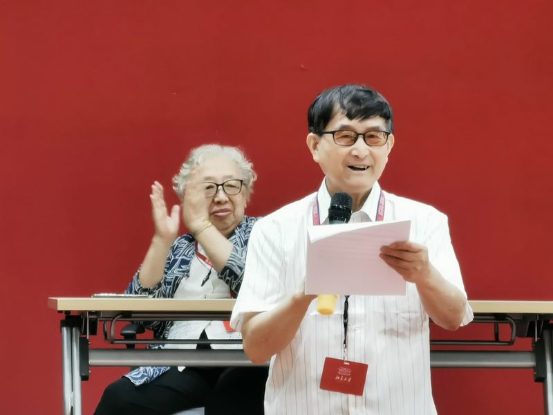 筹备组代表、英语系系友戴行钺教授也做了精彩发言。他在发言中欢迎了千里迢迢特地赶来参加聚会的王乾贵夫妇和刘立炎夫妇,并代表老校友对外院师生寄予厚望。戴教授引用鲁迅先生的金句:“北大永远是向上的。”他坚信北大外院也是永远向上的!最后,戴教授祝愿老同学们“脚踏实地、步步为营,走向人生第五个光辉二十年 !”