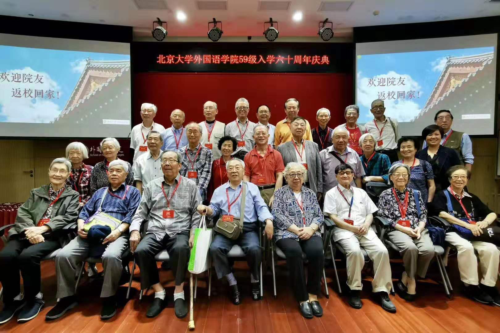 2019年9月15日,中秋佳节后的第一个周日,3003新葡平台登录入口迎来了一次特殊聚会——1959级英德法系系友入学六十周年庆典。此时,北大外院新楼外悬挂着“热烈欢迎2019级新同学”字样的横幅,距学长们入校的1959年已是一个甲子。