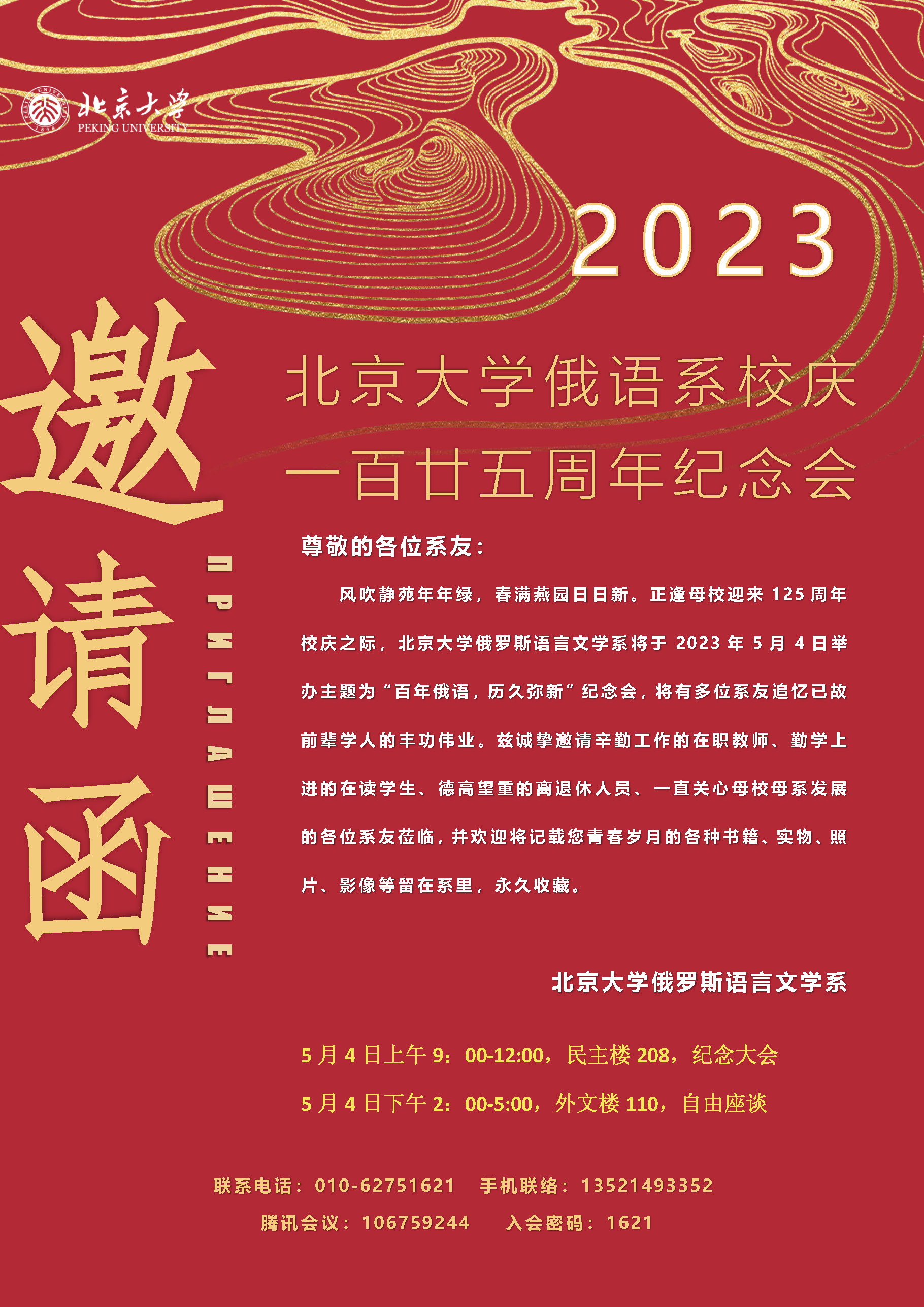 3003新葡平台登录入口俄语系校庆 一百廿五周年纪念会邀请函
