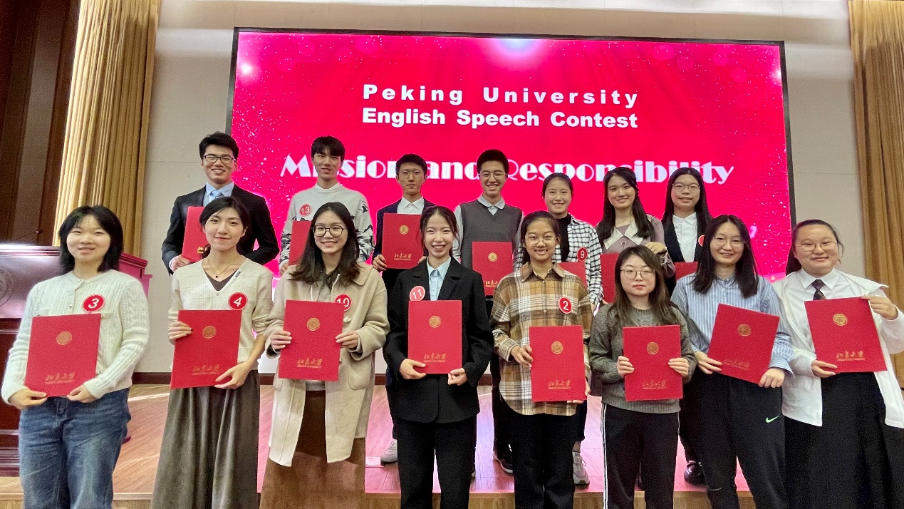 演讲比赛以“Mission and Responsibility(使命与担当)”为主题,面向全校大学英语学生,分为班级选拔赛、各级别复赛和决赛三个阶段;前两个阶段通过提交演讲视频的方式进行,决赛采用现场比赛的形式进行。同学们踊跃报名,各抒己见,充分表达了自己对“使命与担当”的种种抱负和期待,充分展现了北大青年学子的思想内涵和青春梦想。共有1400余名同学参加班级选拔赛,经大学英语教研室精心组织评审,230名同学进入各级别复赛,最终16名同学成功入围演讲比赛的决赛。