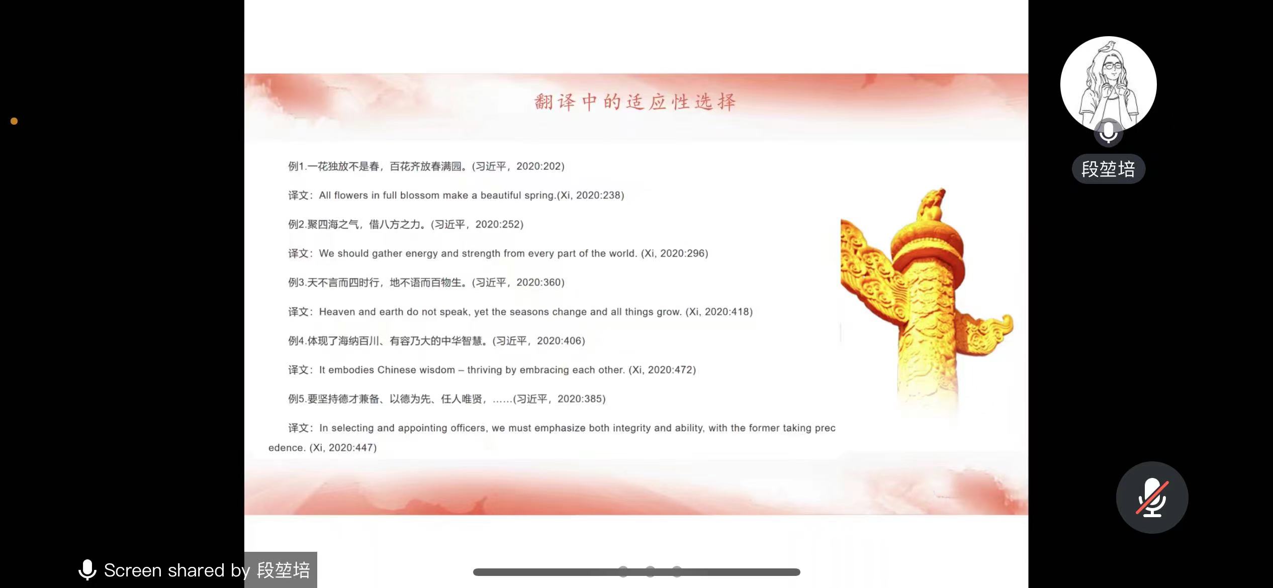 习近平主席引用的古诗词段落的法文翻译讲解