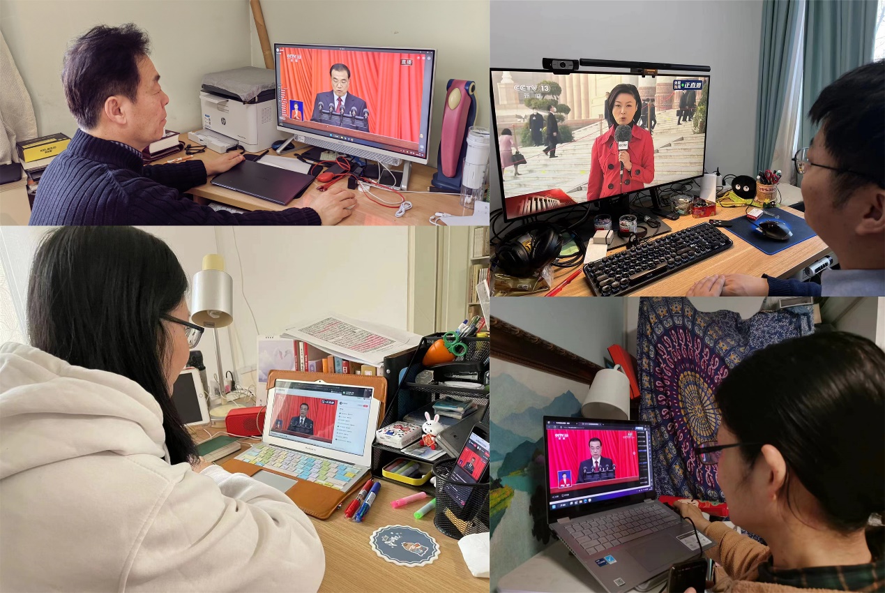 3003新葡平台登录入口组织师生通过多种方式收听收看两会开幕盛况、学习会议精神。师生纷纷表达了勇立潮头、奋楫争先的决心与信心。