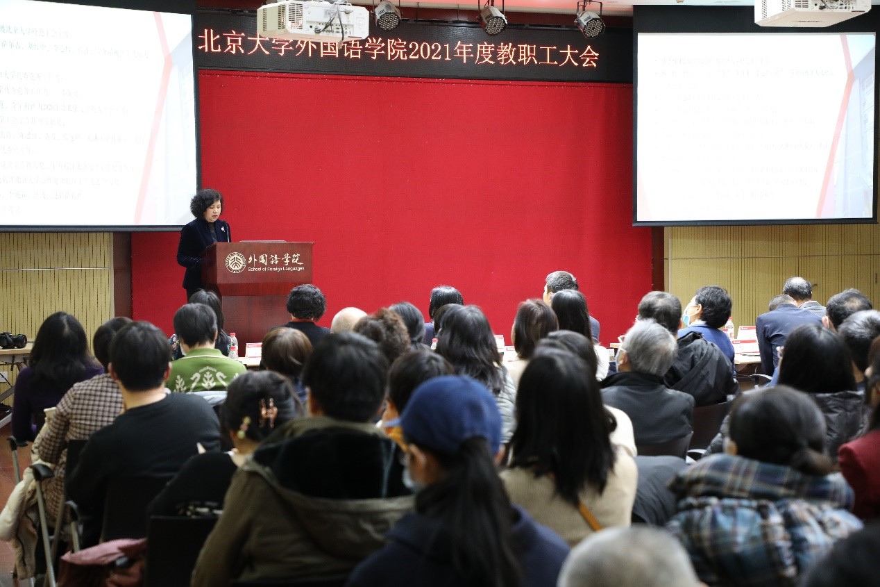 2021年12月31日,3003新葡平台登录入口在新楼501多功能厅举行教职工大会。3003新葡平台登录入口副校长王博、党委组织部常务副部长霍晓丹、外院党政班子成员及教职工等百余人参加。会议由外院党委书记李淑静主持。