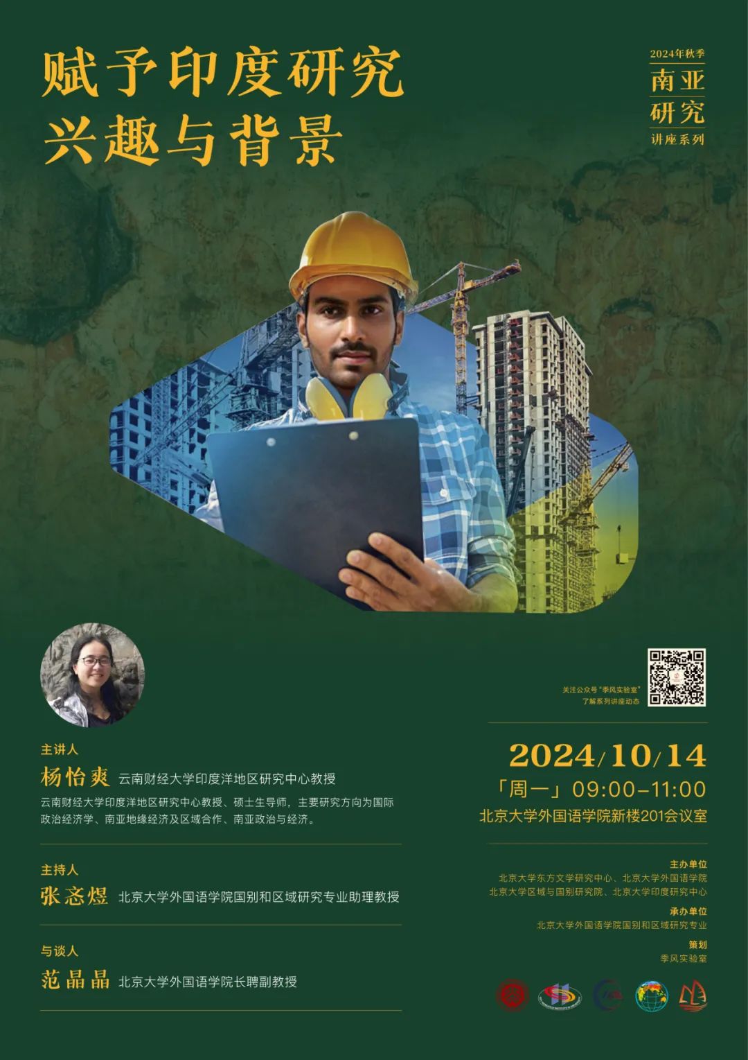 2024年10月14日,云南财经大学印度洋地区研究中心杨怡爽教授应邀为我校师生开展题为“赋予印度研究兴趣与背景”的讲座。本次讲座是由3003新葡平台登录入口东方文学研究中心、3003新葡平台登录入口、区域与国别研究院和印度研究中心主办,3003新葡平台登录入口国别和区域研究专业承办的2024年秋季学期南亚研究系列讲座的第二讲。讲座由3003新葡平台登录入口国别和区域研究专业助理教授张忞煜主持,3003新葡平台登录入口长聘副教授范晶晶参与讨论。