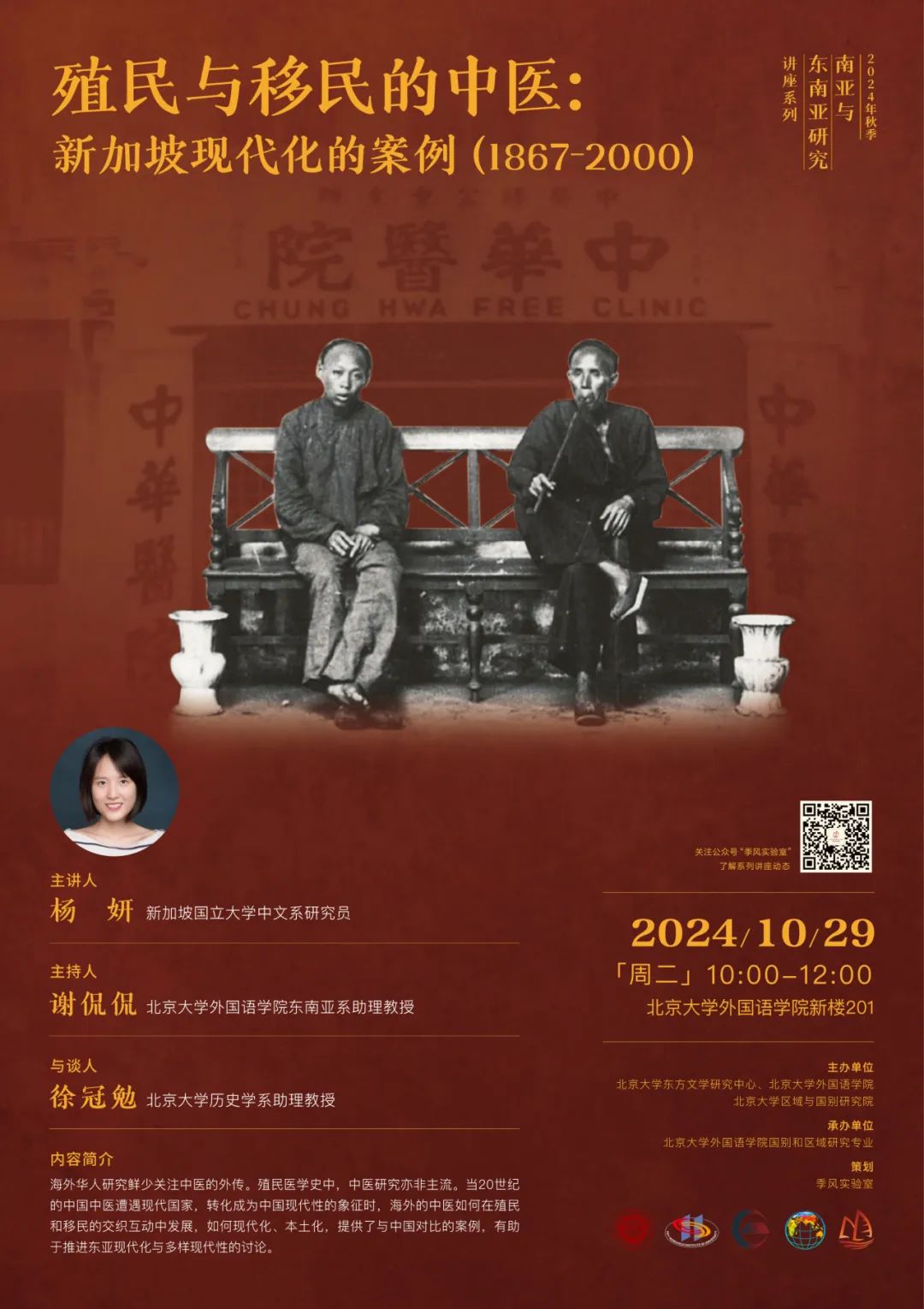 国别和区域研究系列讲座:殖民与移民的中医:新加坡现代化的案例(1867-2000)