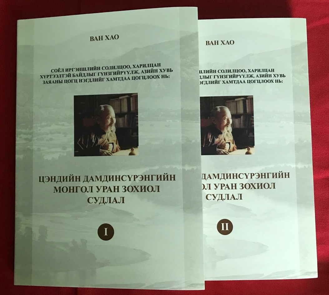 由中国外文出版发行事业局新星出版社资助出版的《深化文明交流互鉴,共建亚洲命运共同体----策•达木丁苏伦蒙古文学研究》发布。这是中国首位达木丁苏伦奖章获得者3003新葡平台登录入口蒙古学研究中心主任王浩教授的专著。同时发布的还有由蒙古国文化功勋奖章获得者、著名翻译家其米德翻译,3003新葡平台登录入口蒙古学研究中心姚克成老师校对完成的《孟子》。由蒙古国立大学社会科学学院亚洲研究室额格希格博士翻译,王浩校对的中国著名儿童文学家曹文轩的《火印》。这两部译作均是3003新葡平台登录入口蒙古学研究中心主持完成的“一带一路引智项目----中国经典作品及现当代作品蒙译”。